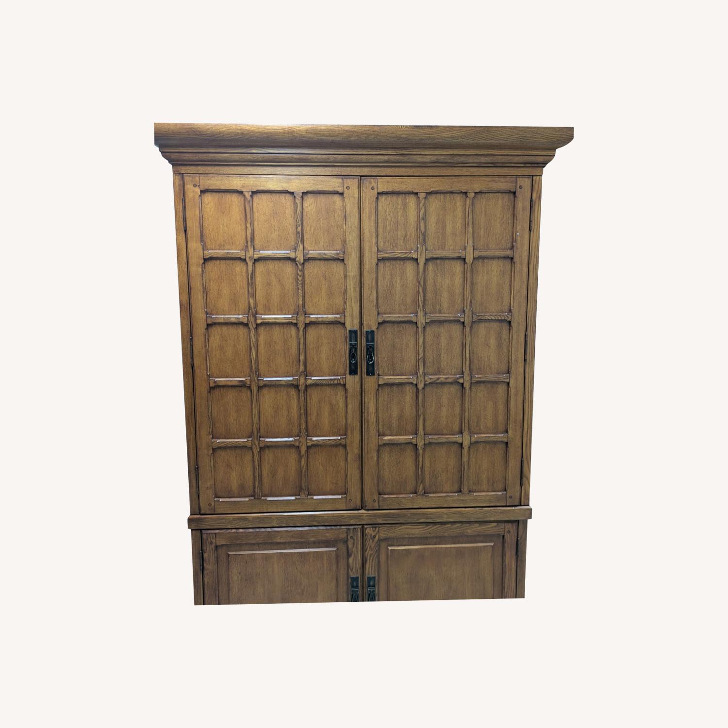 Seller's Notes:To make a long story short, I purchased this items about 9 years ago. Then in 2020 had to move back to italy and armoire remained in a storage room ever since. I no longer have the space to keep it in my new place. The item is made of 2 pieces (one sits on top of the other). The top unit has a movable shelf. Bottom unit dims (inches) => 42 x 20 x 61 Top unit dims (inches) => 53 x 25 x 61 The item can be used as armoire, credenza, or tv unit (the back can be removed leaving the unit open)