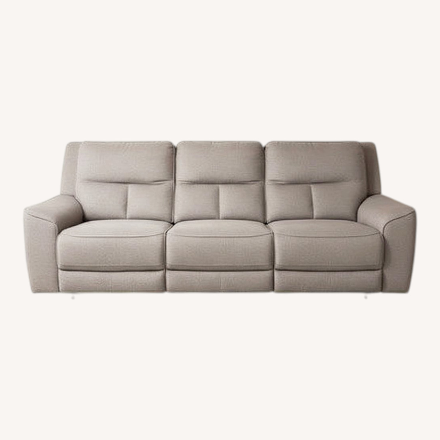 Seller's Notes:Comfy three recliner seater sofa. Power reclining feature. Gray color. Clean and from a pet-free home. Two are attached and one comes apart. Very nice, long and elegant couch. 5 people can sit comfortably. Pet free house. It’s big for our small house especially with kids toys lying all around, you really can’t enjoy reclining. Measurements are: 120 length x 33 width x 40 height in inches.