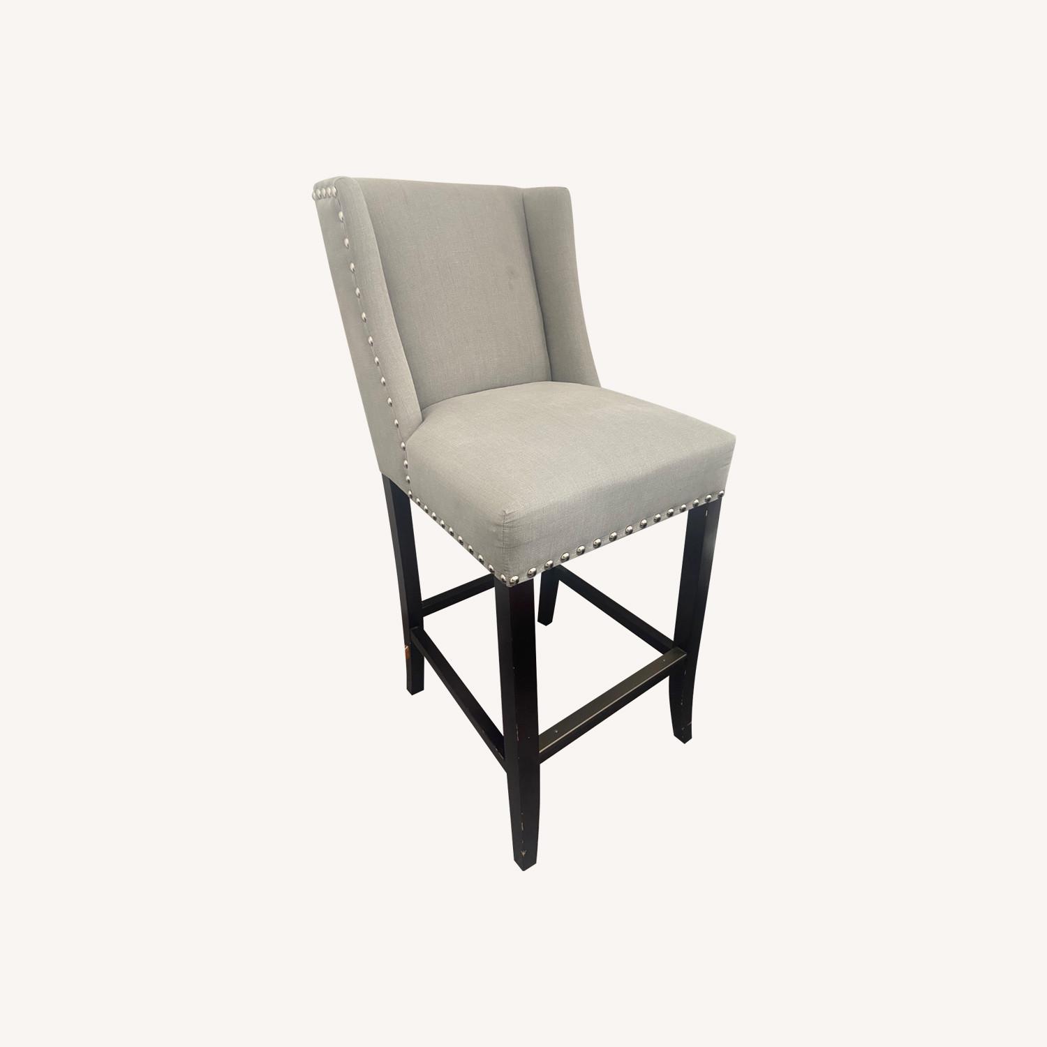 Seller's Notes:Simple light gray bar stool purchased from home goods good condition minor scratches on leg area