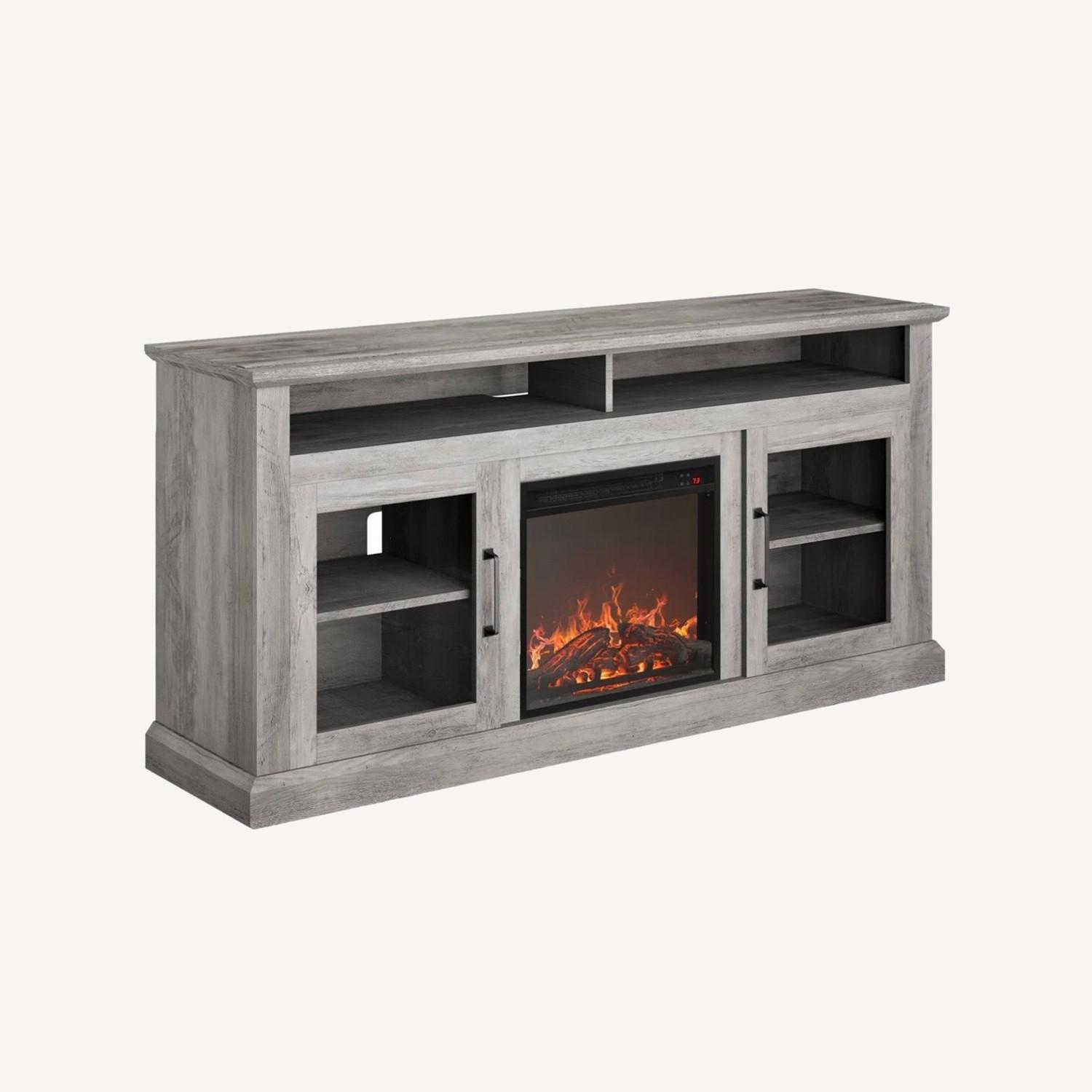 Light Gray Wood Media Storage with Faux Fireplace