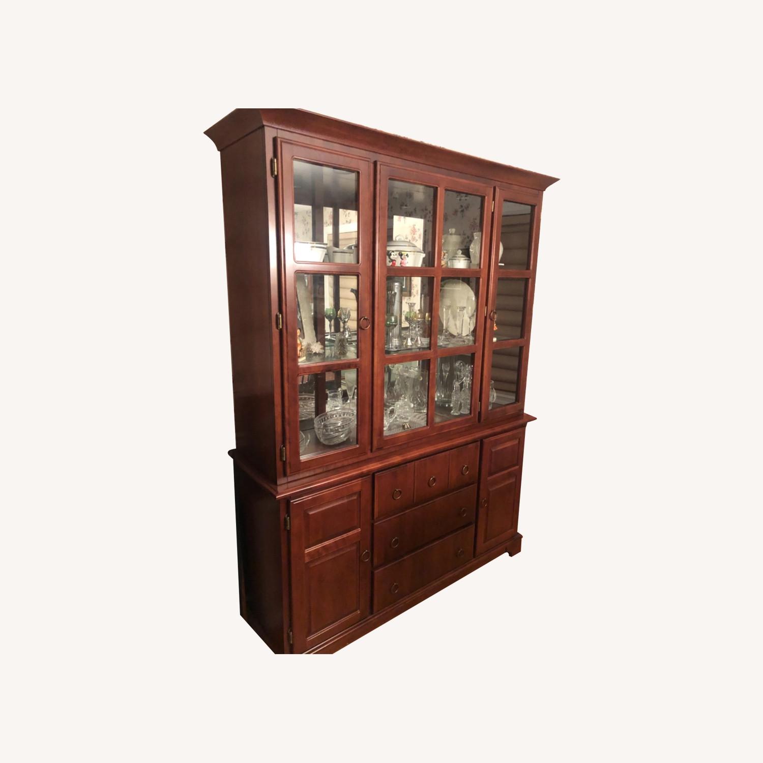 Seller's Notes:Traditional china cabinet with glass shelves, interior lights and storage drawers and cabinets. Beautiful timeless piece that looks like new! Matches the dining room set also posted on this site.