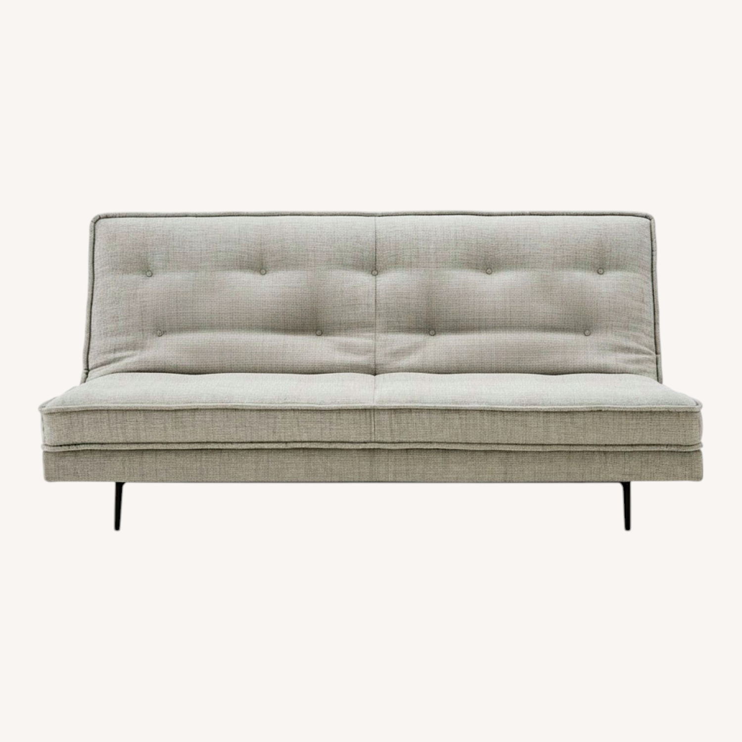 Seller's Notes:A daily-use sofabed of understated elegance. Well-proportioned with molded aluminum feet and traditional, mattress-style buttoned cushions, it evokes the timeless style of the 1930's. Gently used, great condition. Would love to keep it, but converting the room into a baby nursery.
