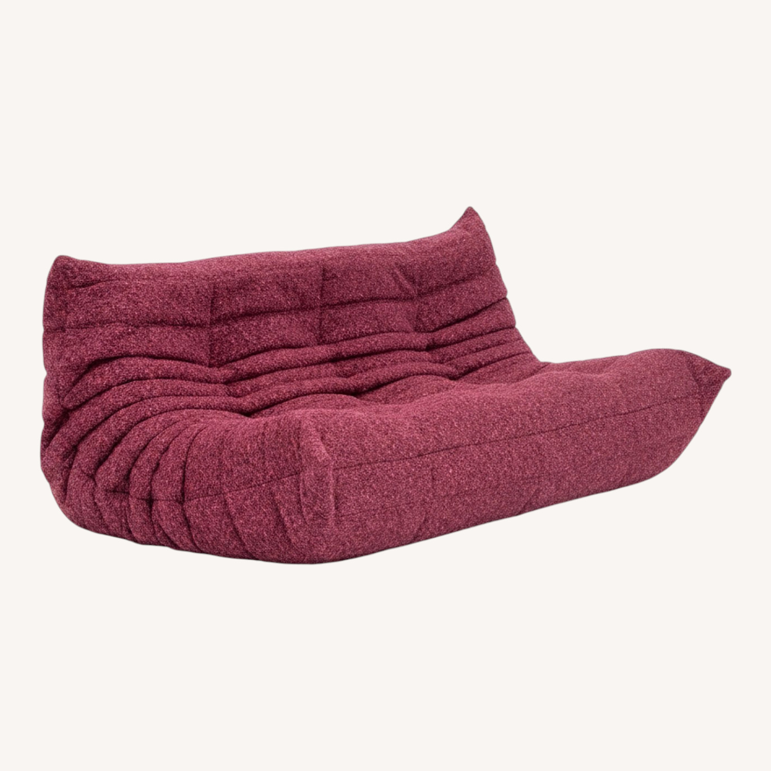 Seller's Notes:This is an original vintage Ligne Roset Togo 3-seater, designed by Michel Ducaroy in 1973 and sourced directly in Europe. The piece has been carefully restored by our in-house craftsmen. All work — from sourcing and authentication to reupholstery — is carried out by us, ensuring provenance and a restoration standard we fully stand behind. Reupholstered in Wild Berry bouclé, the fabric introduces a bold yet refined tone — a rich raspberry hue with subtle depth woven throughout. The textured surface enhances the Togo’s iconic pleated construction, giving the silhouette movement and character while maintaining its sculptural integrity. The original internal structure has been preserved, retaining the authentic comfort, posture, and softness that define Ducaroy’s design. We create only one piece in each fabric. Once a particular edition finds its home, it is never repeated. 1/1. Available now and shipping from Brooklyn, NY.