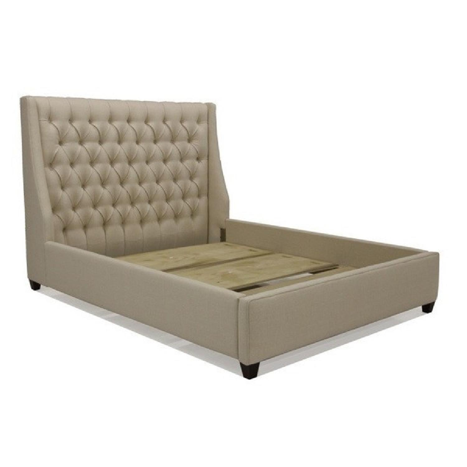 Seller's Notes:Queen-sized bought purchased in 2011 from Lillian August in New York. My husband and I are upgrading to a King-sized bed (since buying our queen, we've had two kids and bc of nighttime visitors we need a larger bed). This is a beautiful, natural-tone upholstered bed with a buttoned headboard. There is some light staining at the bottom of the bed from spills. The legs of the bed are a dark wood. Our new bed is arriving next Monday so we are trying to get this out of our apartment asap.