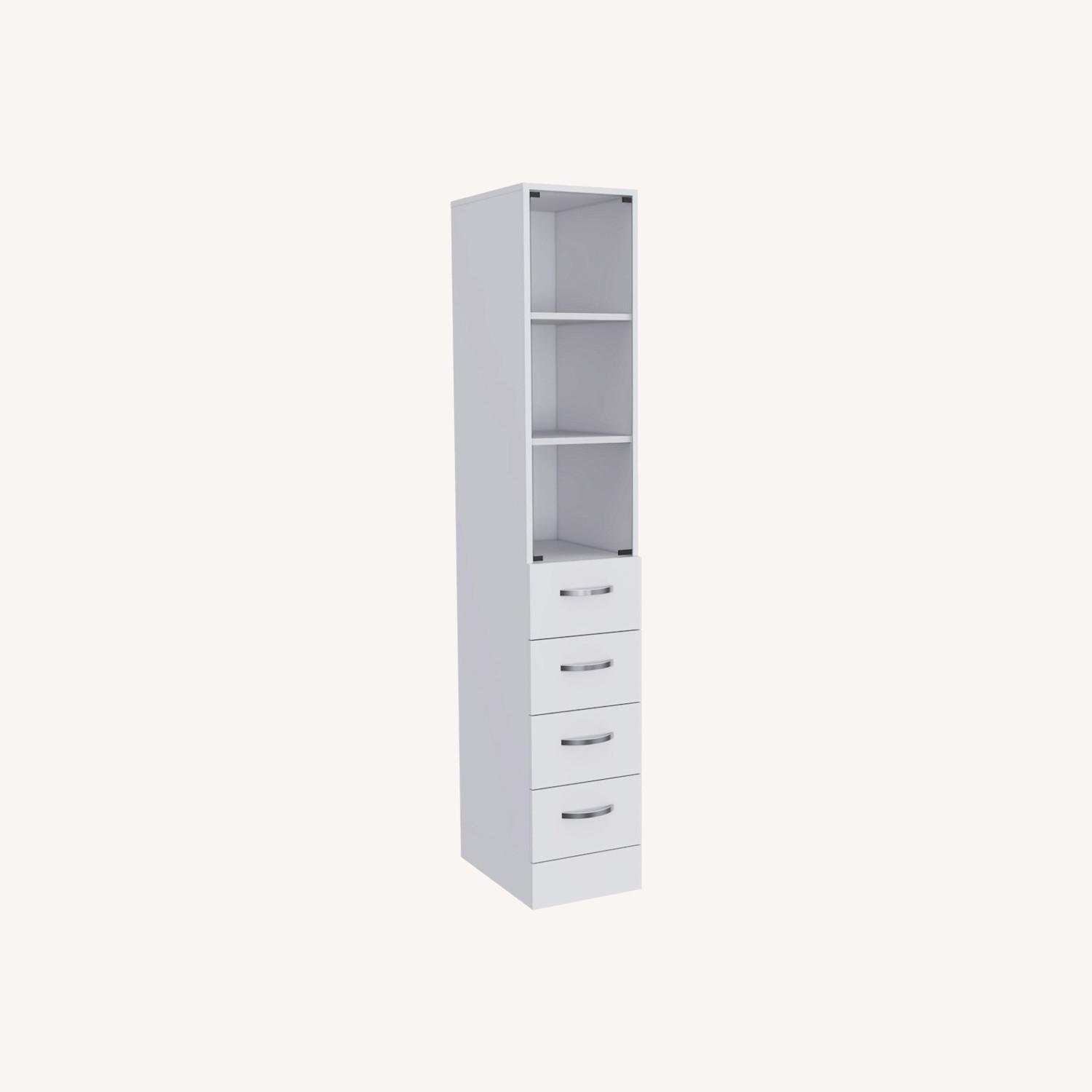 Seller's Notes:"Artic Linen Cabinet is a great product for your bathroom. It will provide you with that extra storage space perfect for storing your linens, towels, or toiletries. It features a Glass door cabinet at the top with three interior shelves (10.74"" width X 17.56"" depth X 11.02"" height) each one, three drawers (10.74"" width X 17.56"" depth X 4.72"" height) each one, for the glass door, interior hinges made of steel, full extension drawer slide for a medium load. Designed with elegant White snow manufactured Wood finish. Dimensions: Height: 68,29” Width: 11,97” Depth: 17,56” Furniture Type: Ready to assemble (full assembly required). Certifications: CARB phase II compliant – TSCA Title VI Compliant. Warranty: 1-year warranty coverage in wooden parts- 1-year warranty coverage in hardware pieces since its manufacturing date found in the lot number printed in the product box. Shipment details: Free shipping to the 48 contiguous states - delivery time: Between 2 and 5 days depending on the customer's location, season, and weather factors. Other details: This product does not include decorative or background elements; Check that the box is in good condition, and well packed, and check with the help of the manual that the corresponding parts have been included; For more information regarding warranty, shipment details, cancellations, returns & replacement parts go to the bottom section of our website to learn more; Installation & Assembly Instructions included."