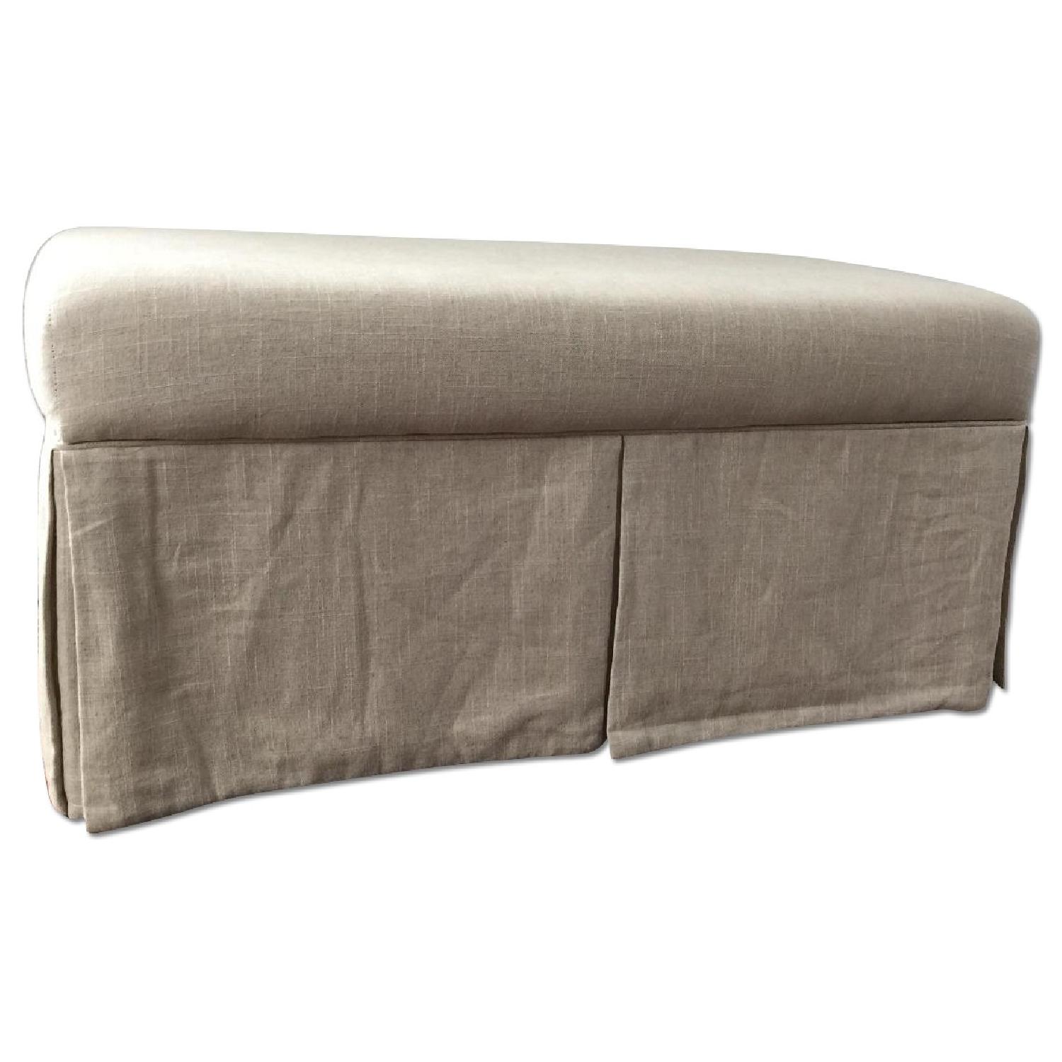 Seller's Notes:beautiful comfortable bench in versatile neutral linen fabric. roomy interior stores six blankets and pillows with ease!