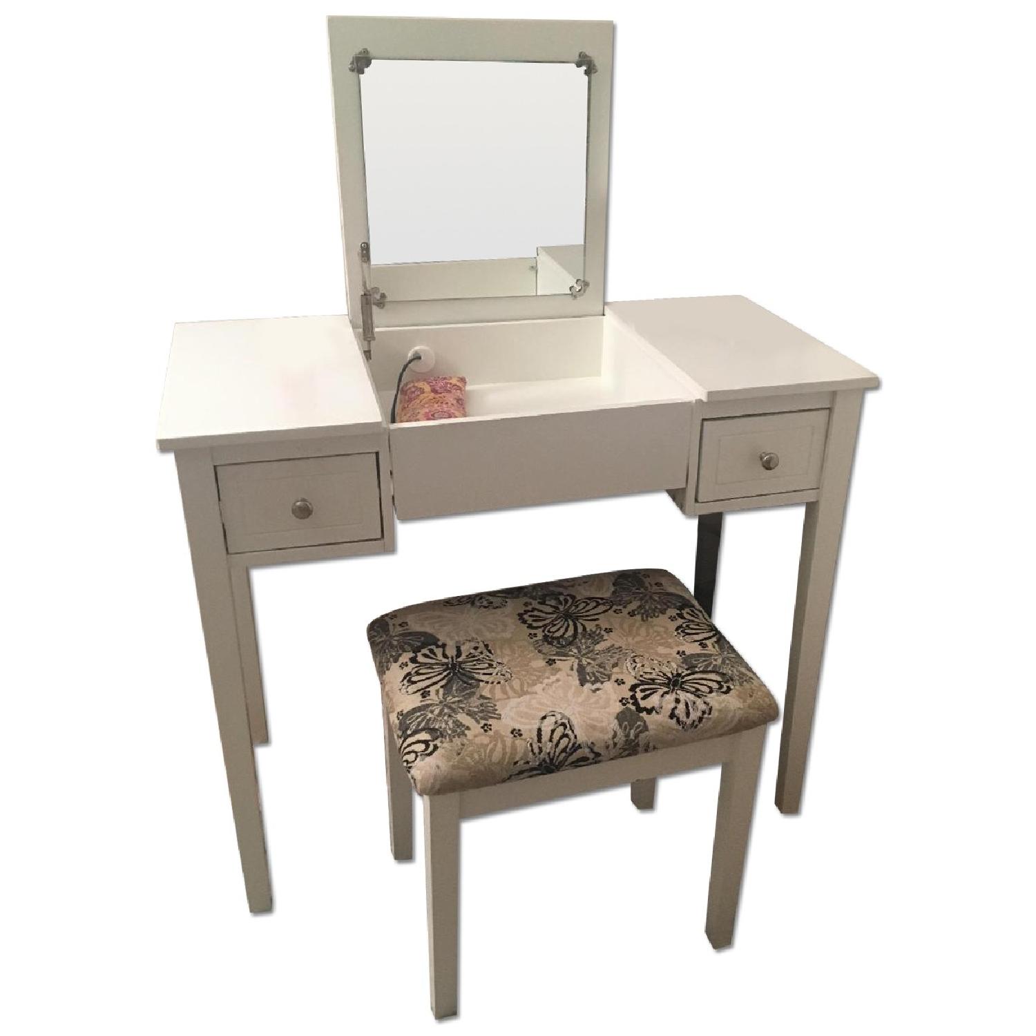 Seller's Notes:Purchased from Amazon less then a year ago. Currently listed on Amazon for $250. Great condition, easy to clean. Easy to take apart and put back together if needed but should be delivered put together. Comes with small makeup mirror shown and small lamp.