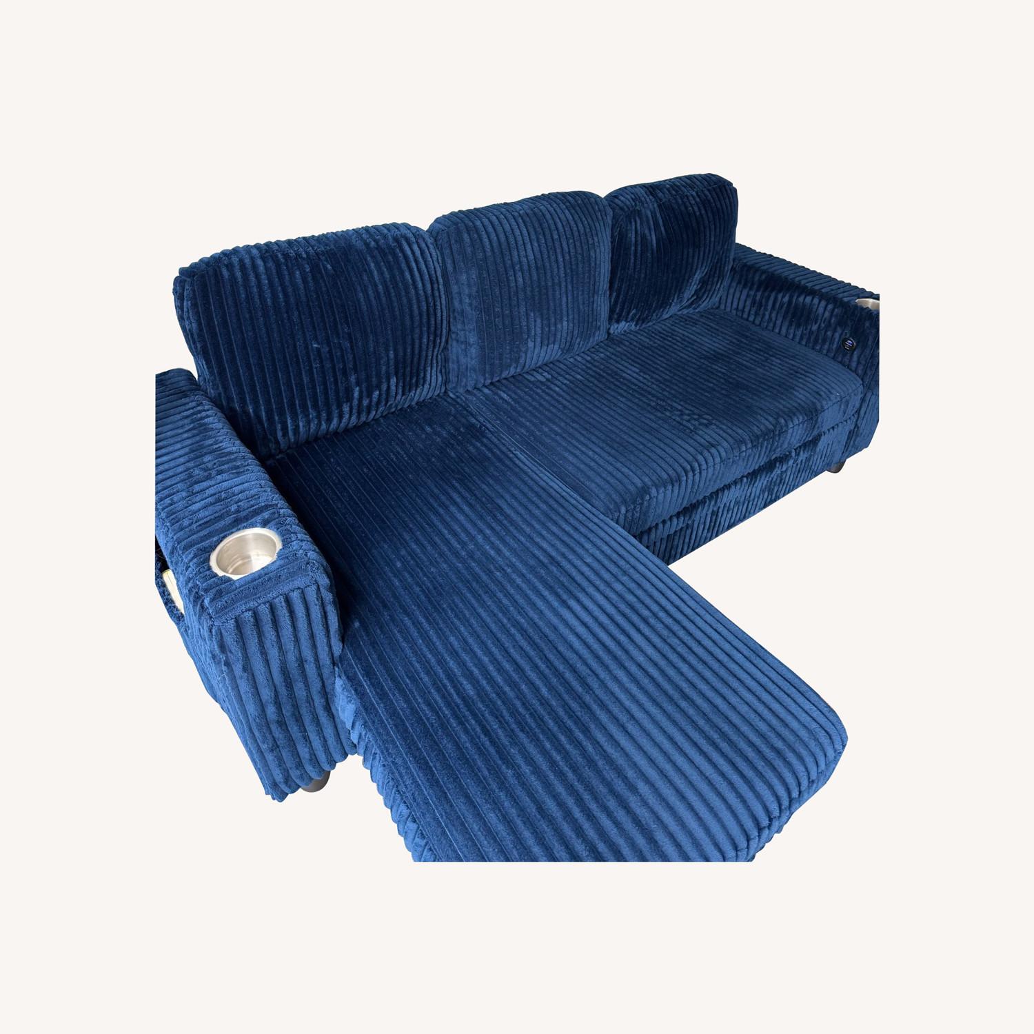 Seller's Notes:This beautiful blue sleeper sofa is in like-new condition — I’ve had it for less than two weeks, and it’s barely been used. The sleeper bed section has never been opened or slept on. No stains, tears, or signs of wear.