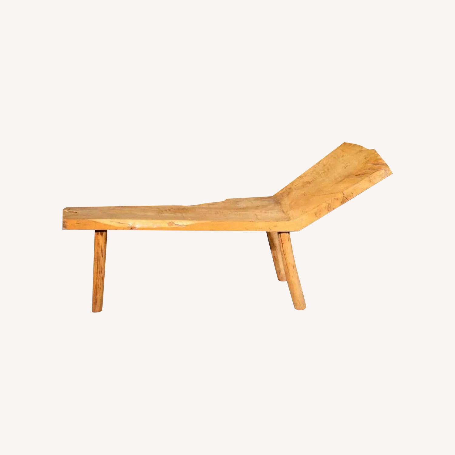 Seller's Notes:Heavy, solid live edge wood chair / chaise / bench. Artist made and very solid. Slanted back for lounging. Free form Height: 32 in. (81.28 cm) Width: 63.5 in. (161.29 cm) Depth: 22 in. (55.88 cm) Seat Height: 18.5 in. (46.99 cm)