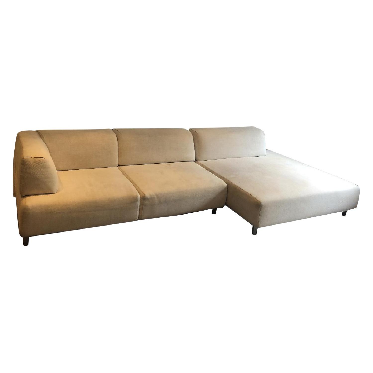 Seller's Notes:Metro2 sofa is designed by Piero Lissoni for Living Divani with a lacquered steel frame with support in beech plywood slats. Armrests and backrests structure in double-paneled poplar and pine, padding with differentiated density polyurethane foam, and fabric upholstery. The fabric is fully removable by zippers and Velcro fastenings. The base is steel with a satin nickel finish. I bought this sofa when I renovated and redecorated my apartment. I am moving and this sofa will not work in my new space. Otherwise, I would clean it and or reupholster and take it with me. Unfortunately, not an option. The sofa has gotten good use and the body of the two-piece sectional is still in very good condition.