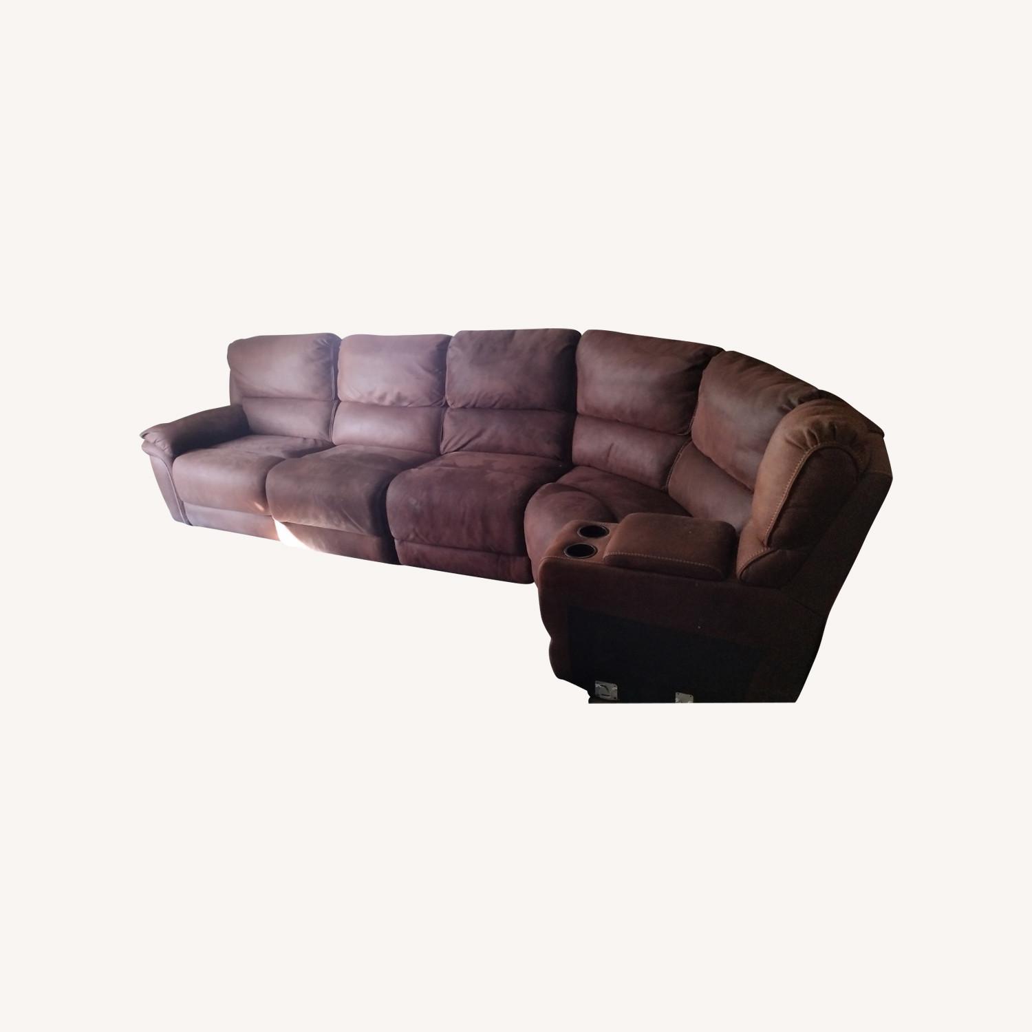 Seller's Notes:Good Condition, microsuede sectional, 4 pieces, 1 end, 1 corner & 2 center sections. Purchase from Living Spaces just before COVID lockdown.