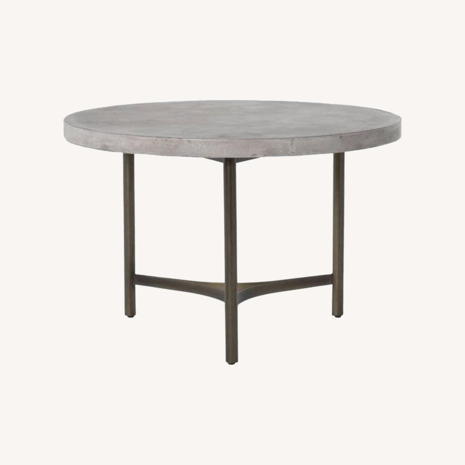 Seller's Notes:A gorgeous cement dining room table with dark bronze metal legs. Incredible condition. Selling the chairs separately, message for info. Local pick-up only, probably need 2-3 people to carry. 30 inches tall, 46 inches in diameter Bought the base and the top separately for $600 total in 2022