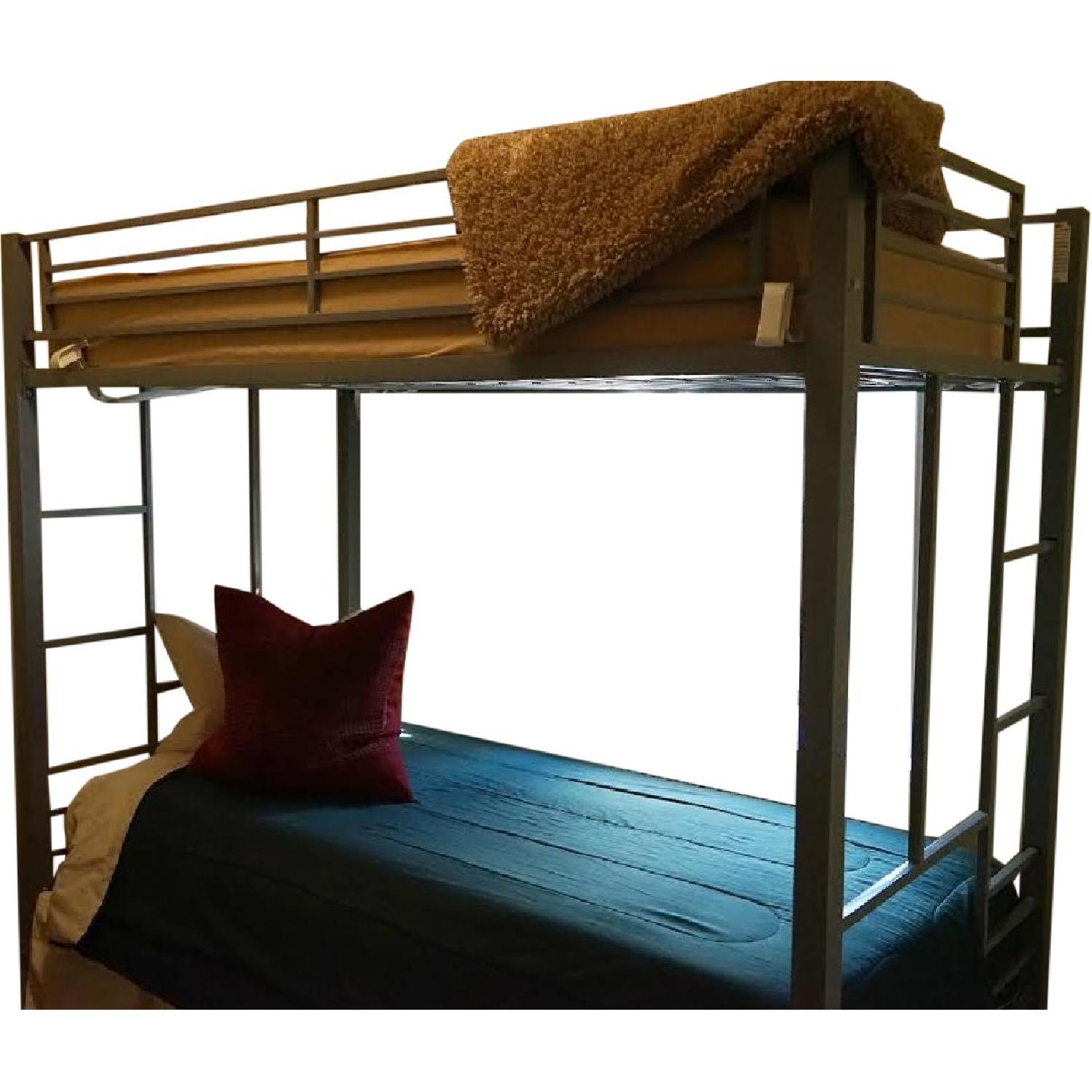 Seller's Notes:Very lightly used twin bunk beds! Great for kids or a throwback for all the adults who want to feel young again. Or if you've always wanted the beds from BIG in your spacious loft! Instructions included. Top bunk bed guard included! Only twin on twin metal loft structure included. Everything else in pictures NOT included. Bunk beds break down for a manageable moving experience. Need to sell by 4/4/16