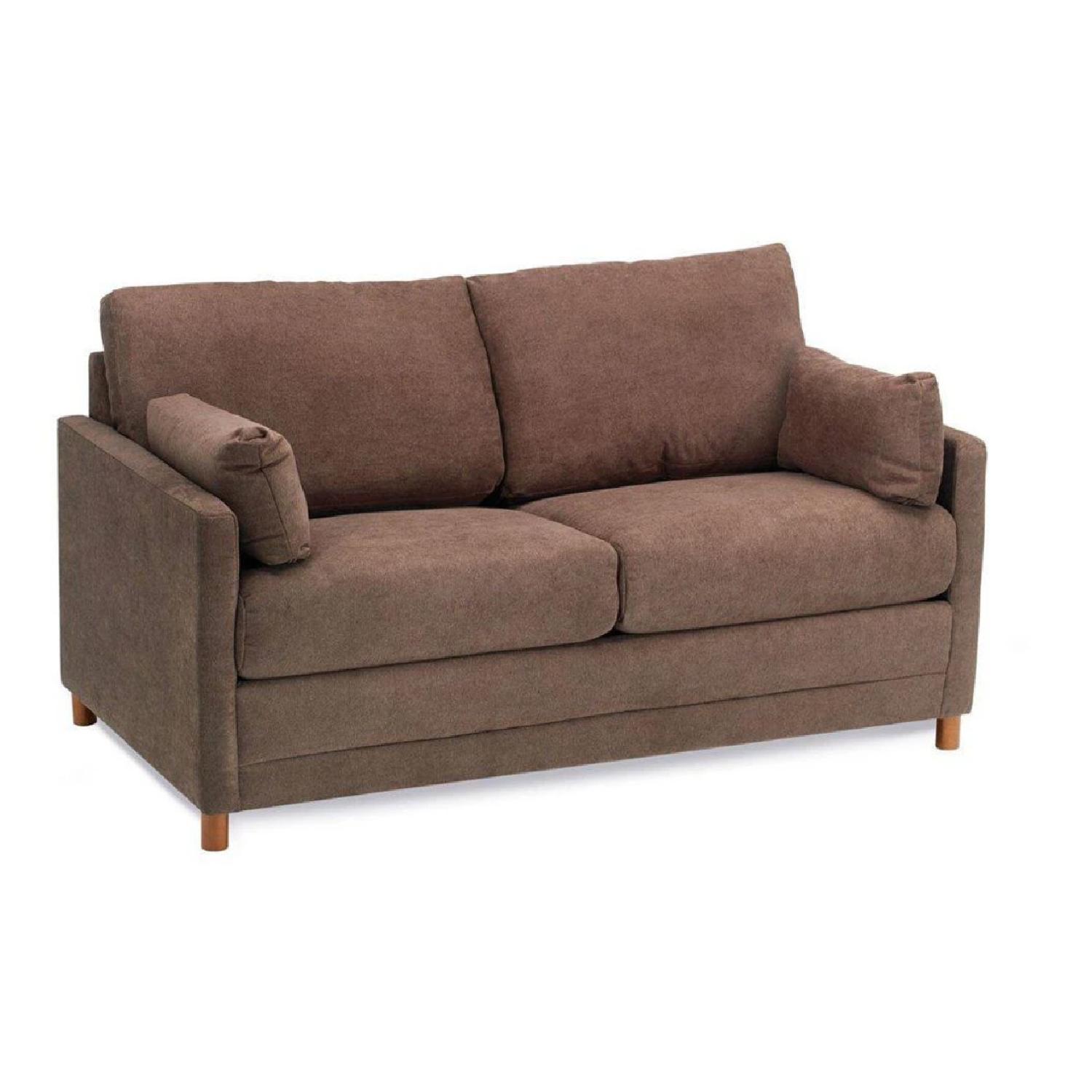 Seller's Notes:COLOR IS CHOCOLATE BROWN This loveseat has been great for my small studio. Moving to the burbs and need to get rid of. This has the air-coil. Full size bed.