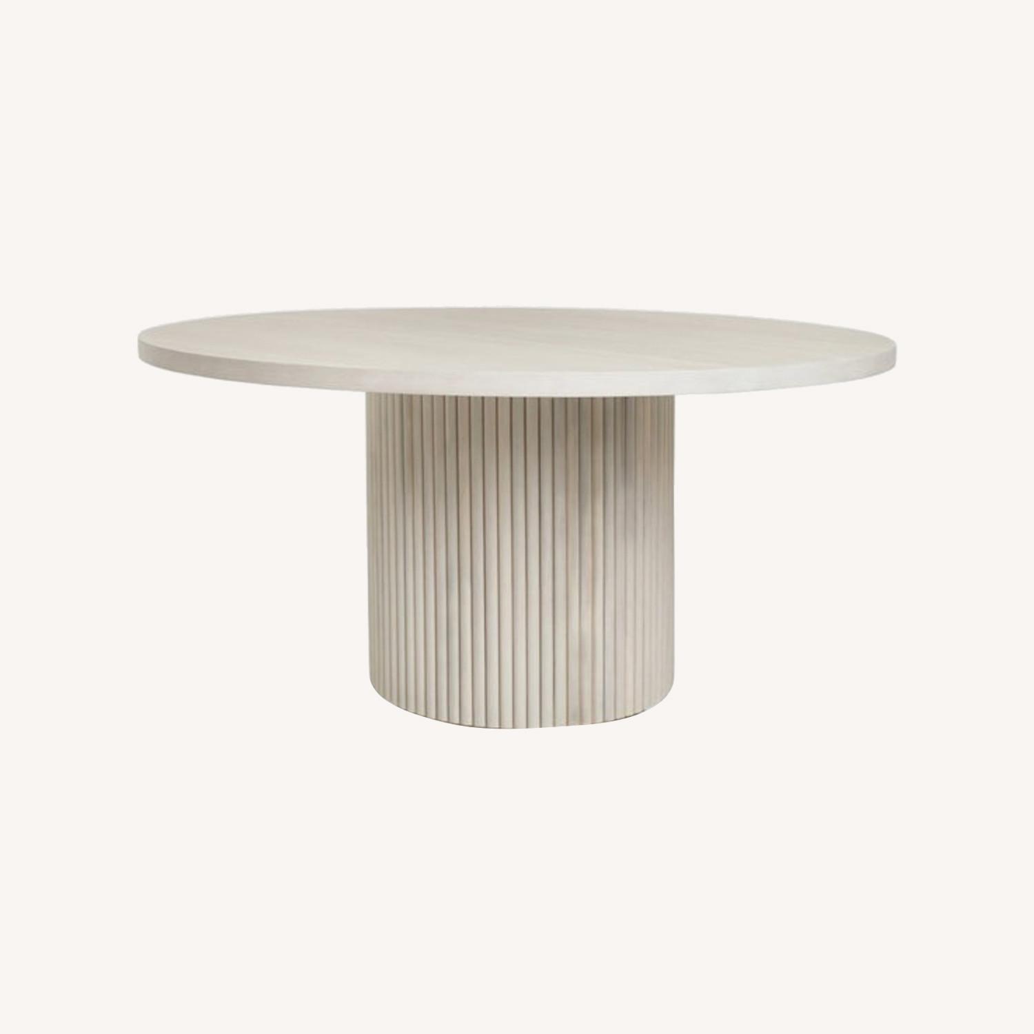 Seller's Notes:"With its large-scale, fluted base design, and muted, white-washed finish, this Rutherford Round Dining Table elevates your space with its vintage-inspired appeal. A pedestal base is made from solid acacia and finished with a veneer top. We love styling this wood dinner table with clean-lined chairs, geometric rugs, and sculptural centerpieces, all in tonal finishes. Ships In: 2-3 Weeks Product Weight: 181 Comfortably Sits: 6 Material: Acacia Wood (Solid Base, Veneer Top) Assembly Required: Yes Imported"