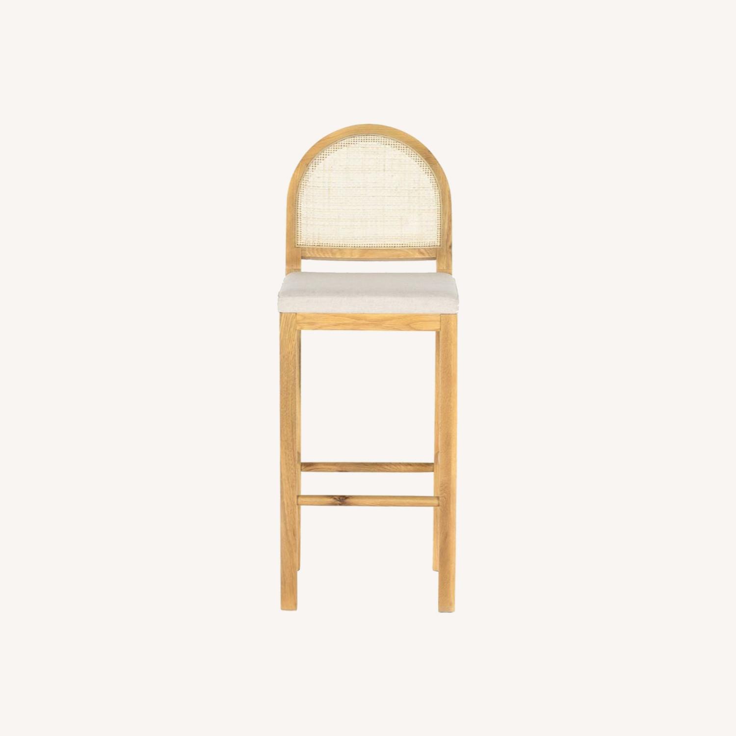 Seller's Notes:Honey-finished oak and an arched back with cane paneling inspire transitional appeal in the Verna Stool. The upholstered seat adds a comfortable touch for effortless warmth in any space, whether providing dynamic seating or styled as a kitchen stool.