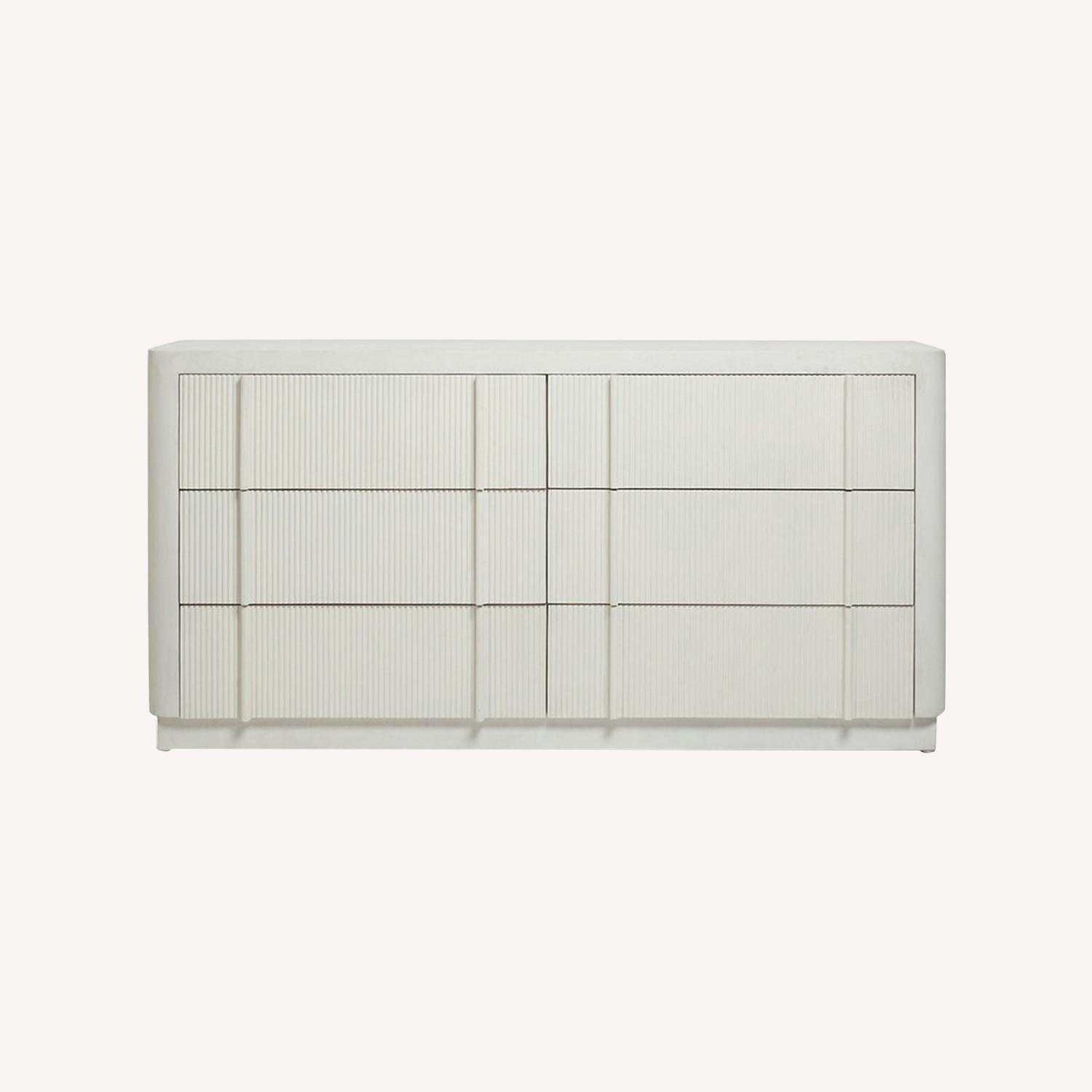 Seller's Notes:"The Merrit dresser features a deco-inspired woodwork construction that pairs crisp, curving lines with ridged detailing and carved drawer pulls. Set on a plinth base, this off-white, matte-finished dresser has six spacious drawers to add function and style to a transitional bedroom look. This modern white dresser is from our exclusive Sarah Sherman Samuel collaboration and features all the trademarks of her warm, edited style. Number Of Drawers: 6 Drawer Closure Type: Metal Gliders Weight Capacity: 180 Lbs Material: Mango Wood, Engineered Hardwood Assembly Required: No