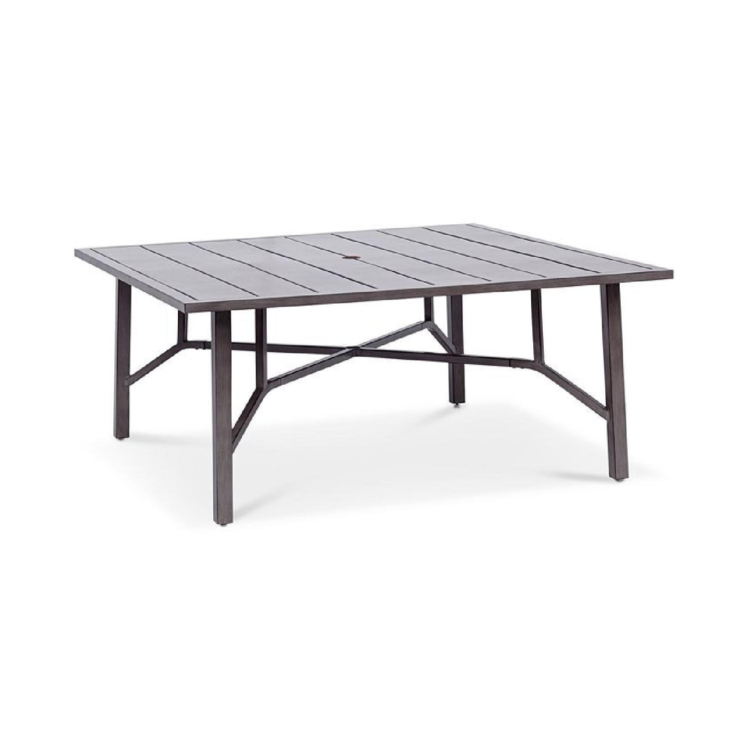 Seller's Notes:Macy's Aluminum 64" square Wayland Outdoor Dining Table - lovely weathered gray Comfortably seats 8 Lightweight (65 lbs) yet sturdy and durable Super easy to assemble “Excellent Condition - very lightly used - has been stored” Moving