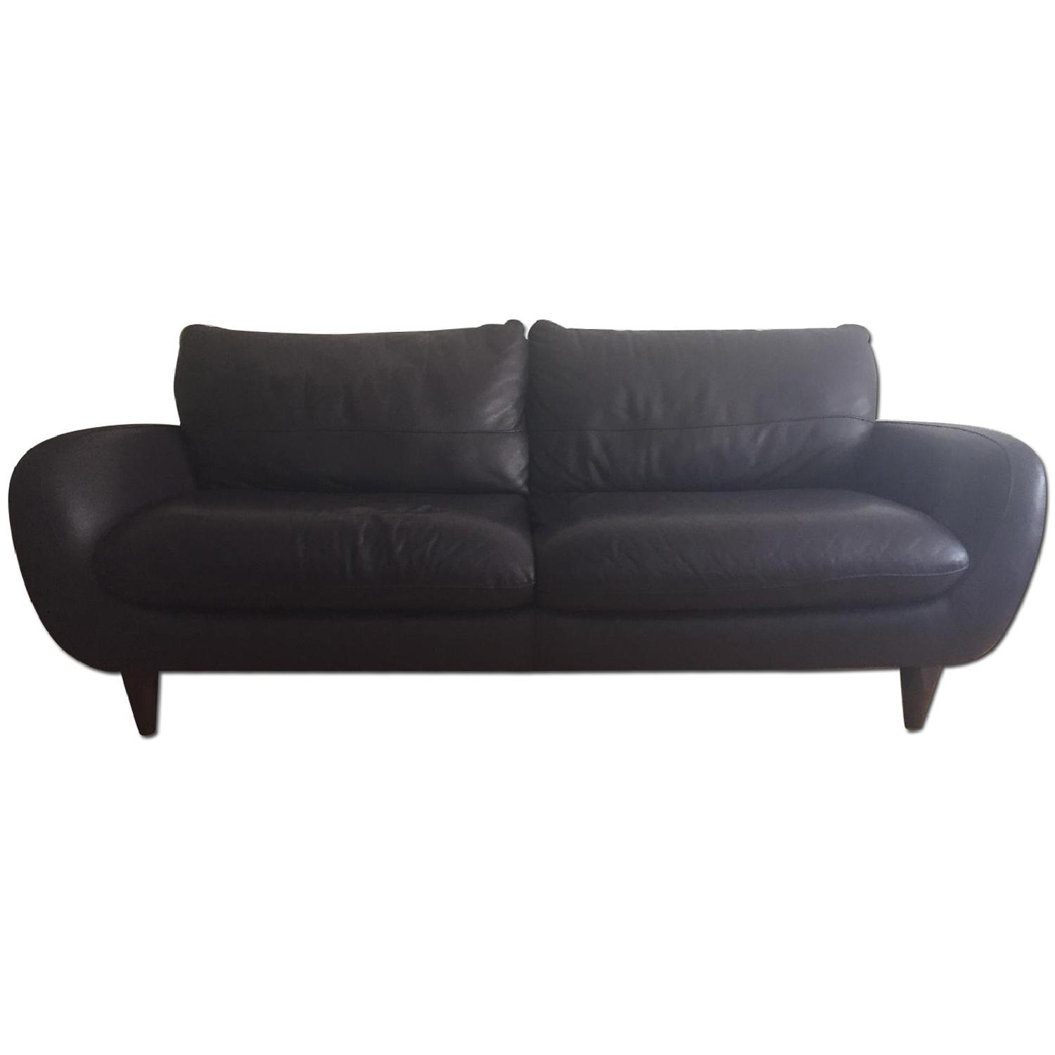 Seller's Notes:Sofa is like-new with no damage to leather. Color is a beautiful and unique eggplant. Purchased at Macy's for $1200. Moving to smaller apartment.