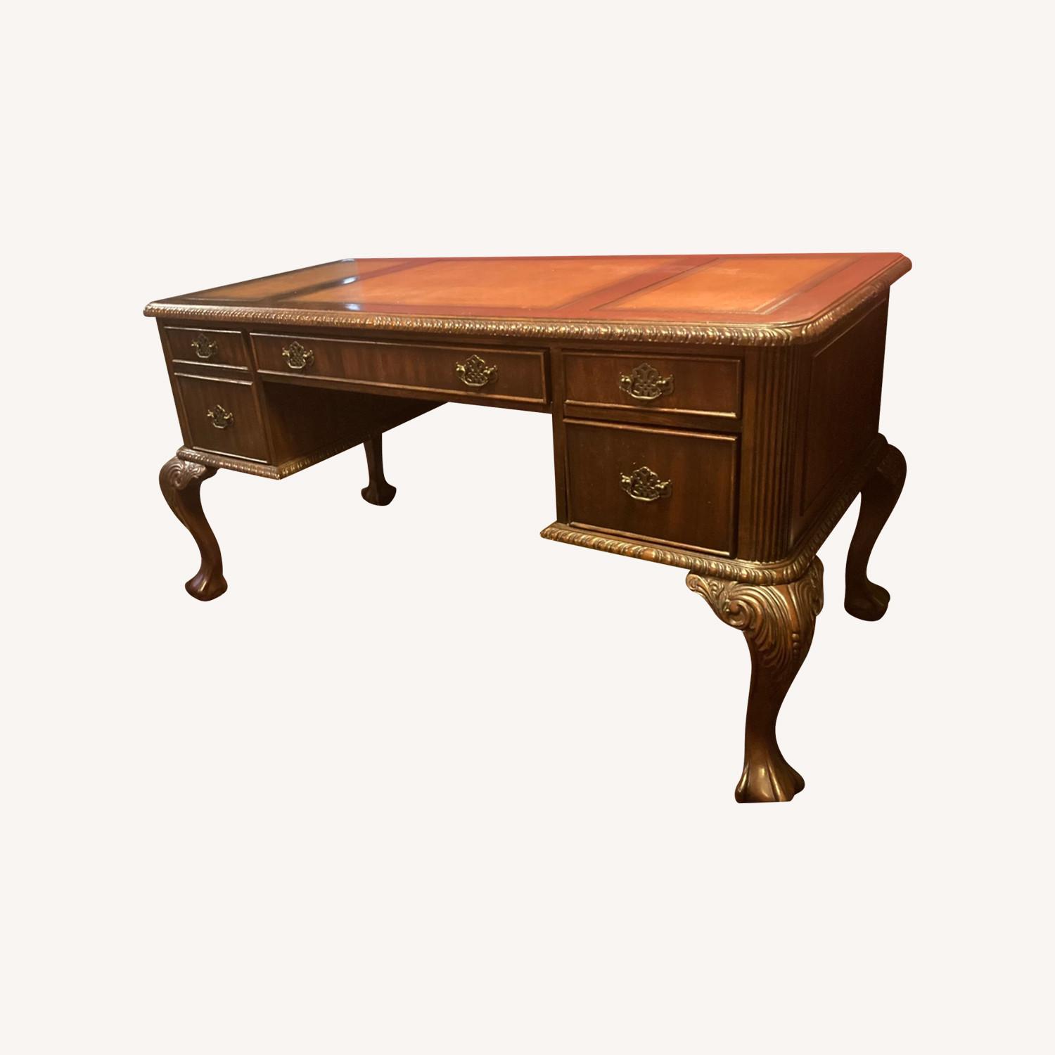 Seller's Notes:I bought this gorgeous desk and chair a few years ago and never used it except for storage. Not a scratch or blemish to be found. Time to downsize to make room, and looking for a quick sale. In near new condition with genuine leather top, fold down drawer panel for keyboard, and filing drawer along with two other storage drawers. The matching legs on the desk and chair can be removed for easy moving. A steal at the listed price, so feel free to steal it from me.
