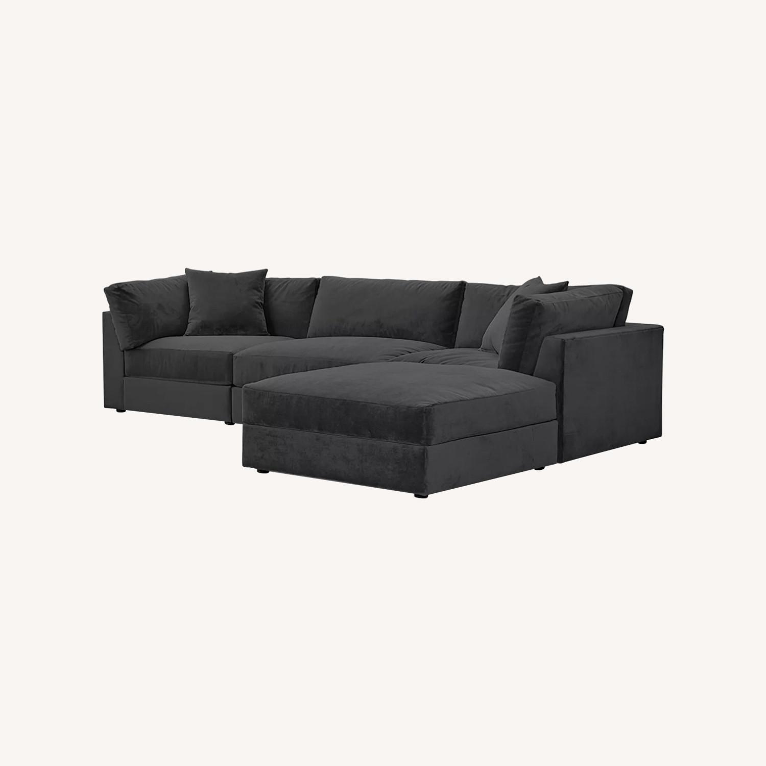 Seller's Notes:Hello! I am selling an oversized sectional - Aryanna Fabric Bella Asphalt Gray - Macy's - $2,400.00 This couch is like new. I bought it right before the pandemic and then moved to a different location where it didn't fit! It's been sitting unused for a few years. It's from Macy's Aryanna collection which is discontinued/they don't make anymore! It's greyish/blue, soft velvet-like material, and comes with all pillows. It's not a pull out, but you can definitely sleep on it. It's super long! There are a few photos here. It comes as pictured in the first image. Two corner seats plus one in the middle and the ottoman. It's 4 pieces total. I'd love to have you come over and see it!! Please be in touch to come visit and check it out. Located in Westchester, NY