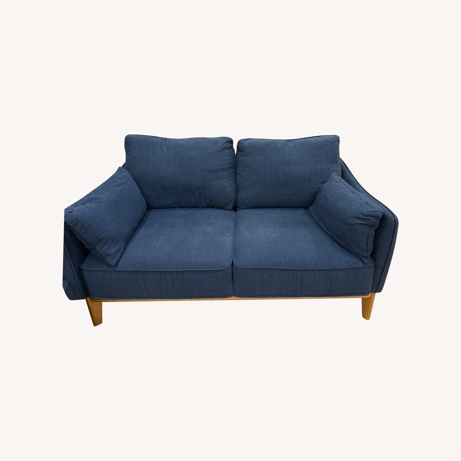 Seller's Notes:Sofa is still very cushioned and comfortable. Has not sunken. Matching 3 seat sofa also on sale. Stains seem to be removable as they are not stains from food. Sofa has been washed twice during its life. ~RL