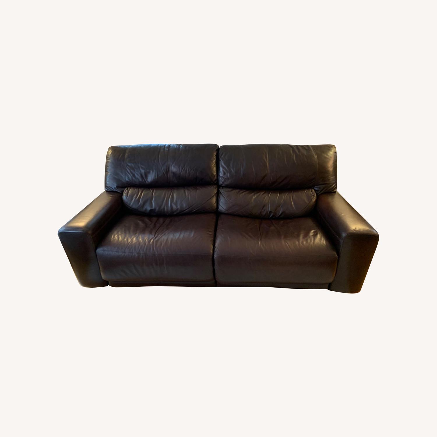 Macy's Dark Brown Leather Dual Recliner Sofa