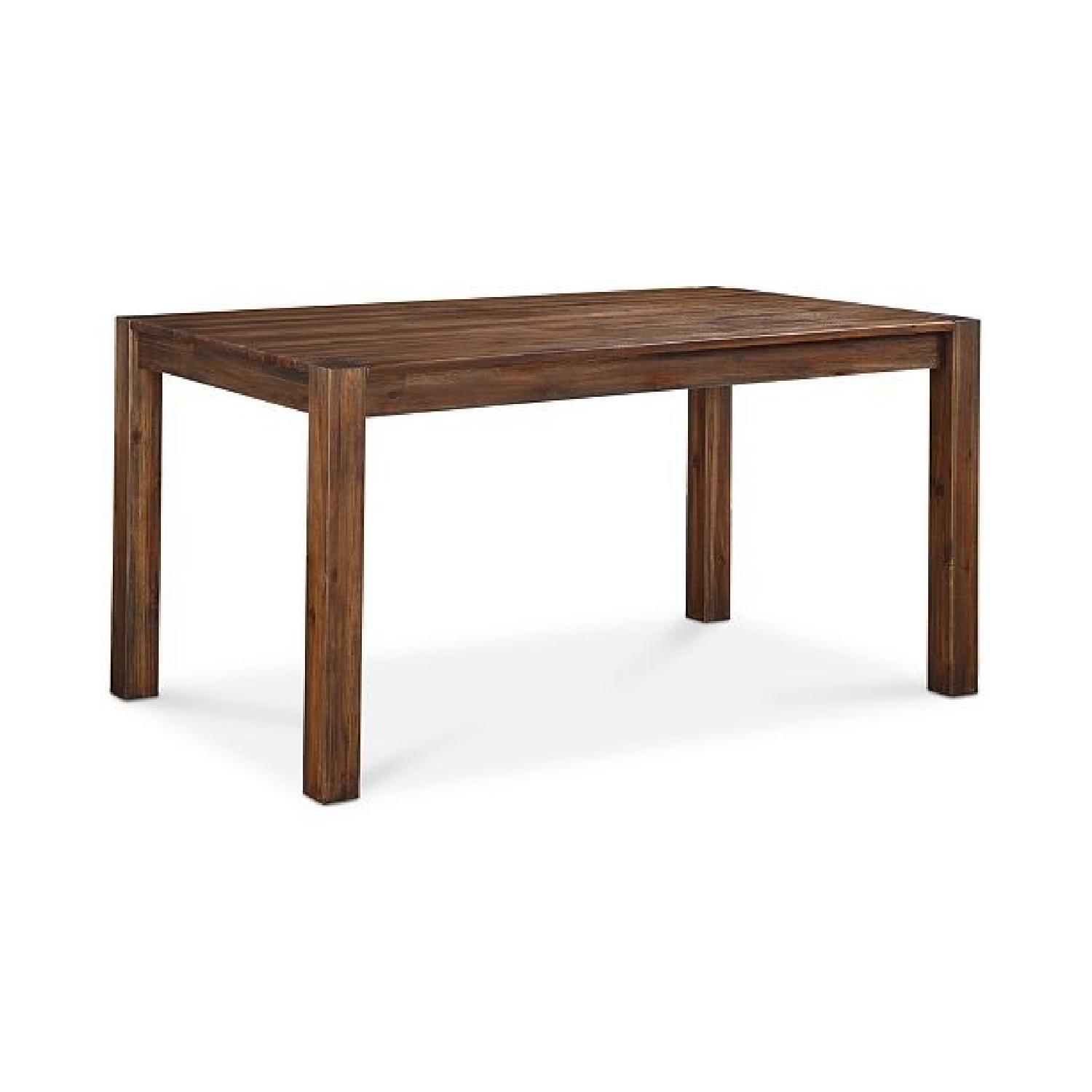 Seller's Notes:Standard of beauty. A clean & crisp silhouette brings focus to the solid acacia construction of this dining room set. The wire-brushed finish & rustic glaze add intricate texture & create a blank canvas for fitting right in to any style of room or decor.