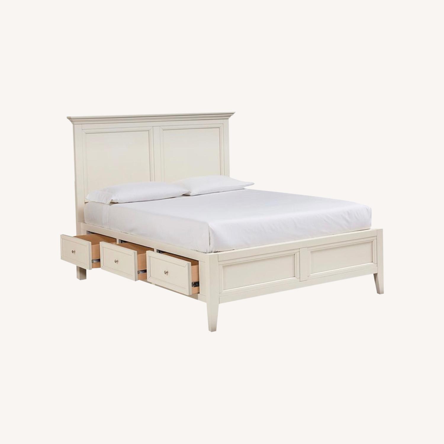 Seller's Notes:Full Sized Macy’s Sannibel Storage bed (6 drawers) off-white / beige colored. A couple of marks as pictured. Great bed for apartment living. Will require assembly / disassembly.