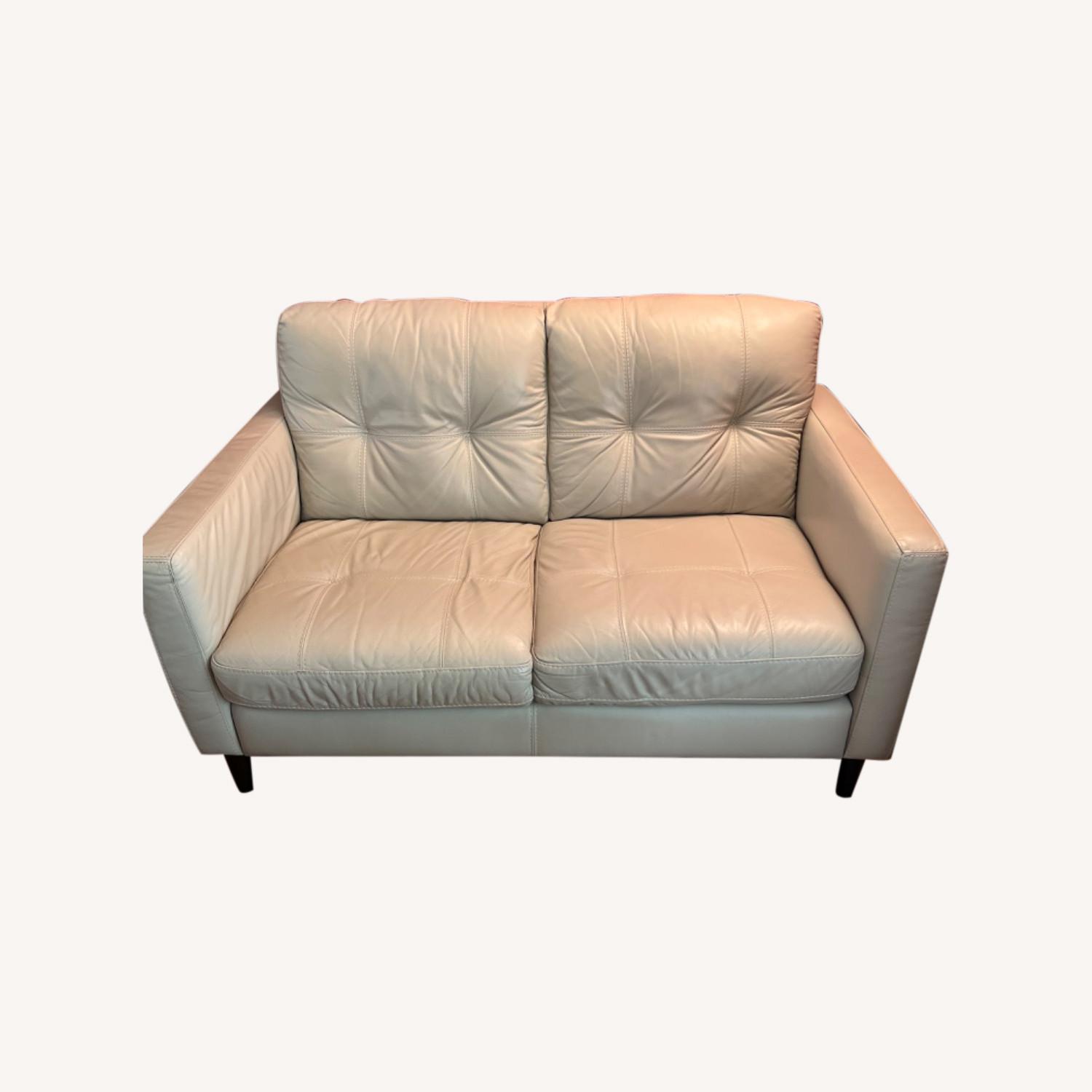 Seller's Notes:This loveseat is in excellent condition. It’s very comfortable, with a solid wood frame and high quality leather. No other pets in the household except for a cat. It is a part of a 4 piece set, along with a sofa, an armchair and an ottoman, listed separately.