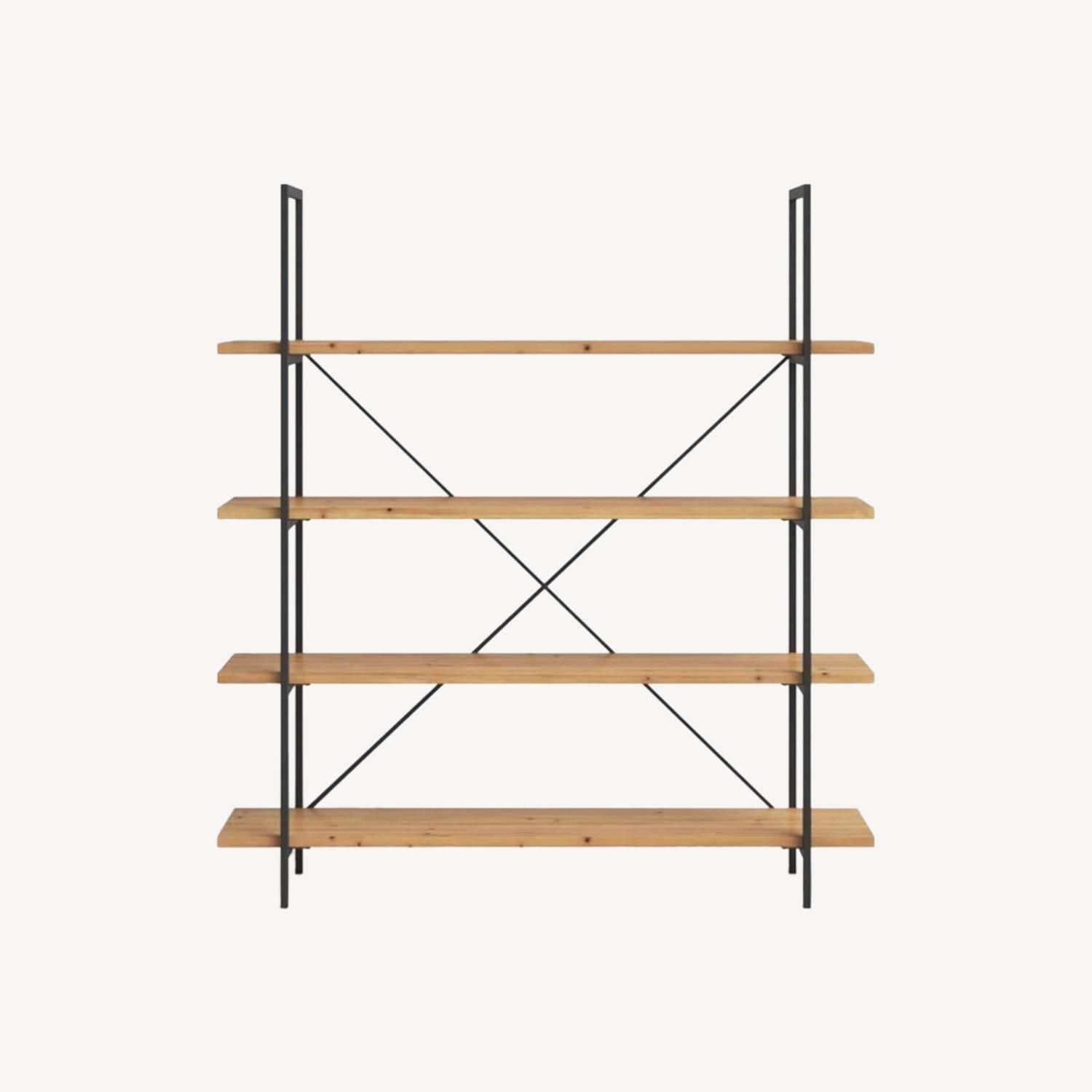 Seller's Notes:With its wide-open silhouette, this etagere bookcase holds a lot of literature without weighing down your space. Four fir wood shelves rest in a black iron frame, for a function-forward look that draws on industrial style. An X-shaped crossbar adds stability + architectural interest.