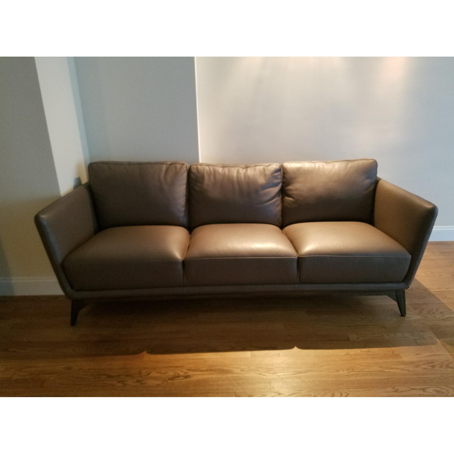 Macy's Kourtney Modern Grey Brown Mushroom Leather Sofa w/ Quilted Sides