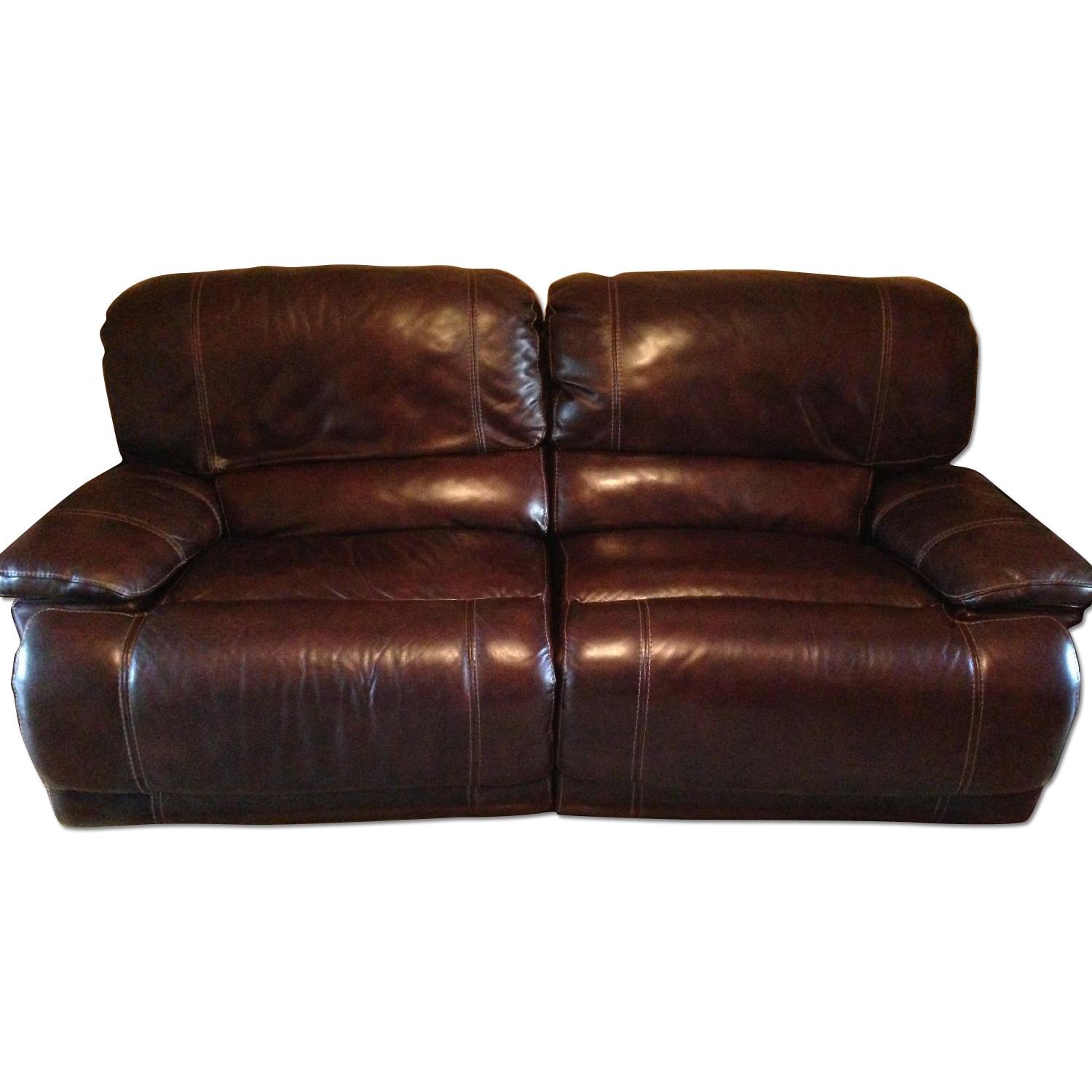 Seller's Notes:Miramar II Leather Seating with Vinyl Sides & Back Double Reclining Sofa Tailored to perfection, the Miramar double-reclining sofa gives a much-needed lift to you living space. Detail stitching, plush cushioning and soft leather and vinyl upholstery make an instant impression, suggesting a taste for the finer things in life: sophistication of style and a appreciation for relaxation. Leather seating with vinyl sides and back Dual reclining elements- Reclines fully and hugs wall relatively close, though not a wall hugger. Sinuous spring construction High-resiliency foam seat cushions provide supreme comfort Hardwood and hardwood/plywood frame for long-lasting durability Foam-wrapped frame protects upholstery and improves tailoring Able to Remove backs for easy moving into smaller spaces A little over 1 years old. The Flaw mentioned is on the back left side from wearing against an end table and barely even seen. Also will include leather cleaning kit.