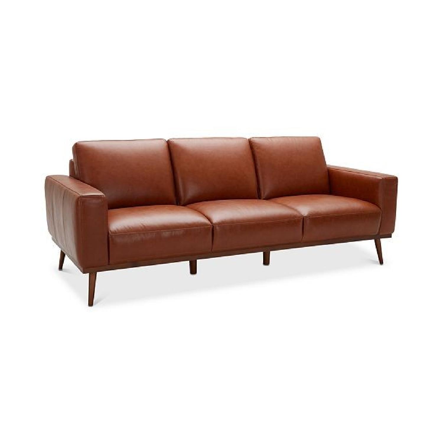 Seller's Notes:Macy's Marsilla couch in cognac leather Purchased a few months ago, no major stains or scratches but some signs of normal use(eg some fingernail scuffs, minor surface scratches) All of which add to the character of this couch with it's leather that will enrich over time. The cushions are all broken in so comfy seating is to be had! We bought this couch after an old chaise hit it's last legs. Unfortunately our snap purchase doesn't fit our life as well as a chaise does and we're selling this to get back what we once lost.