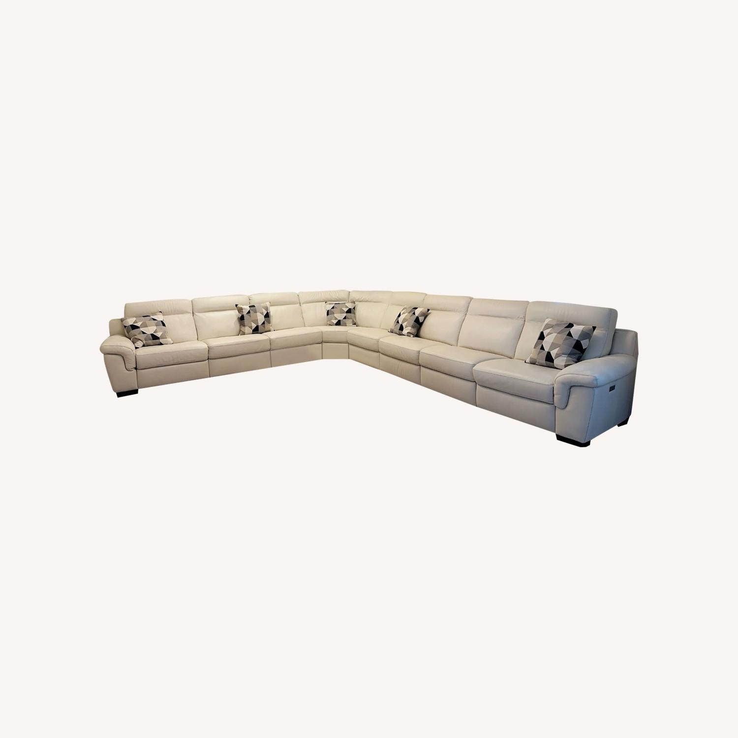 Seller's Notes:White leather L-shaped with 2-power recliner. including mattress and Center Table in the price.
