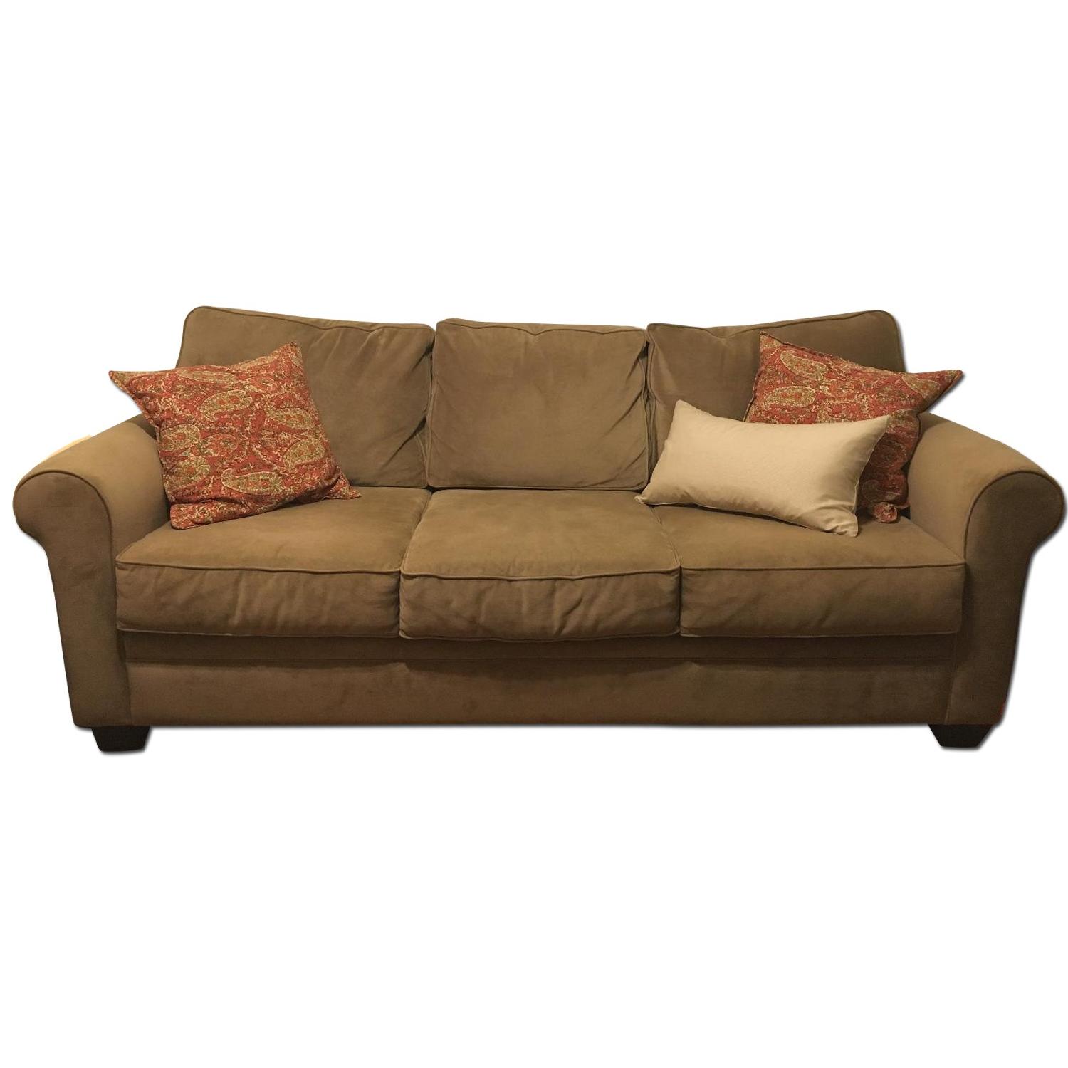Seller's Notes:Must go this week!!! Comfortable, lightly used queen sleeper sofa. The microsuede material makes for easy cleaning and the natural stone color fits with any decor.