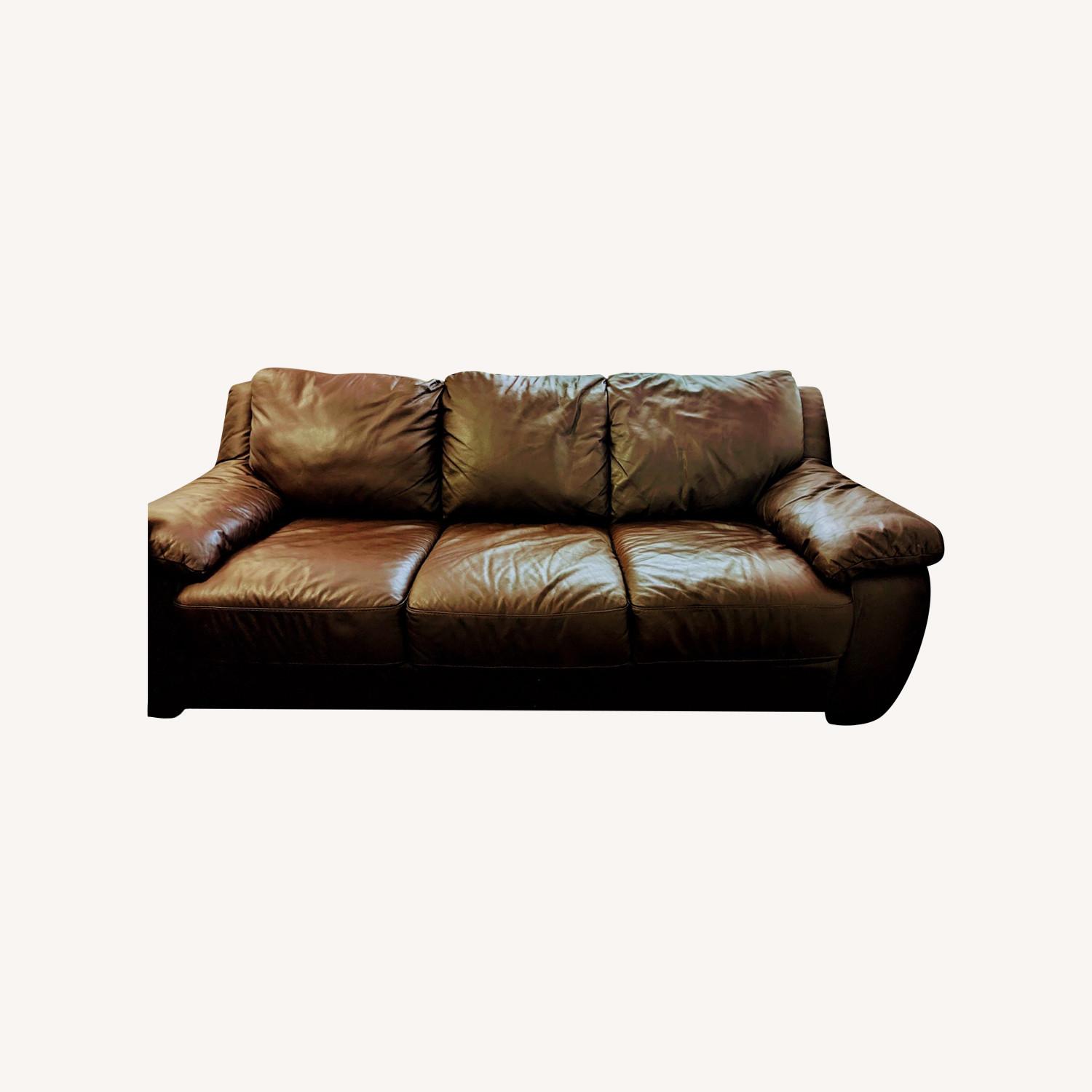 Seller's Notes:87 in real leather sofa bed, been in our guest room and used sporadically so it's in great shape! Very sturdy and easy to clean, the bench cushion makes for easy removal to unfold the bed.