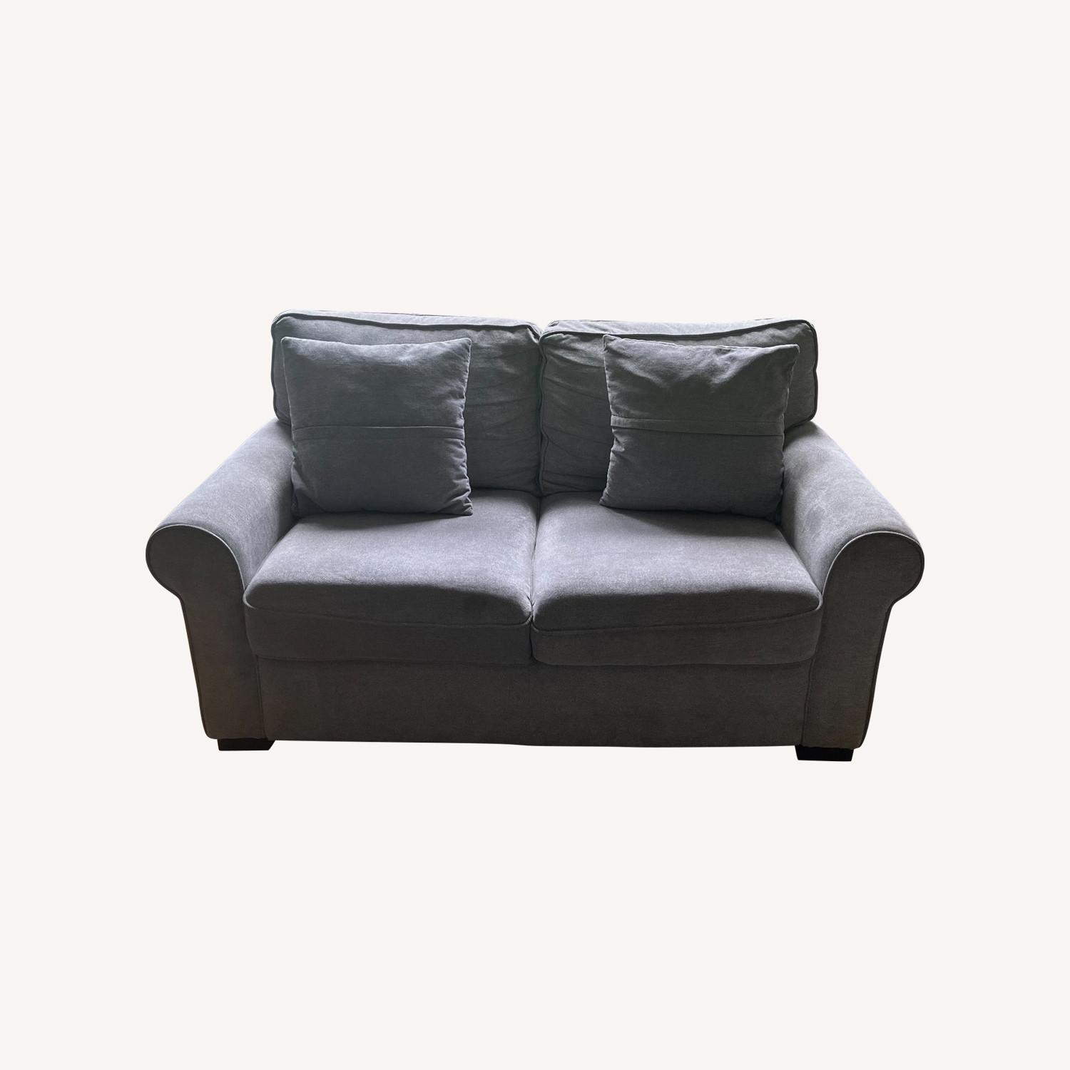 Seller's Notes:Super comfortable sofa loveseat in great condition! The pillows are included and all the covers have been recently washed and cleaned. The sofa is only a couple years old and there are no stains or tears, the cushions are still very fluffy and super comfortable for two people, but you could sneak a 3rd person on there. Pickup in Jersey City from the building lobby - there is a dolly is available to help if needed, but it isn't a very heavy couch. This is a Macy's sofa that retails for $590 (see dimensions and original listing: https://www.macys.com/shop/product/ladlow-65-fabric-roll-arm-loveseat-created-for-macys?ID=9935287&CategoryID=35419&swatchColor=Light%20Brown%20Brown)