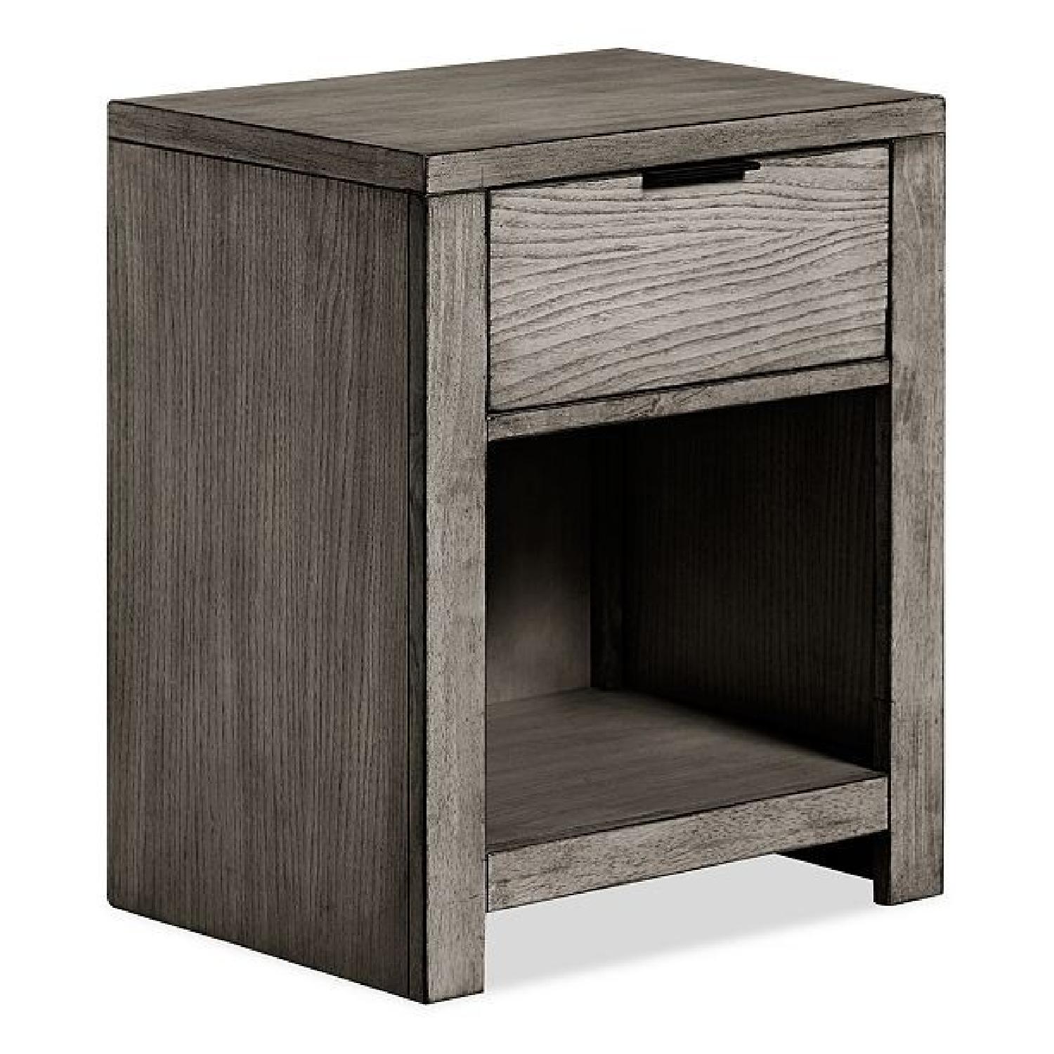 Seller's Notes:Pair of grey wood nightstands purchased one year ago. We are moving to an apartment with a smaller bedroom and thus have to part ways with these pieces. Minor stain on the detachable lining of one of the nightstands. Also selling matching 7-drawer dresser (see picture) on the site.