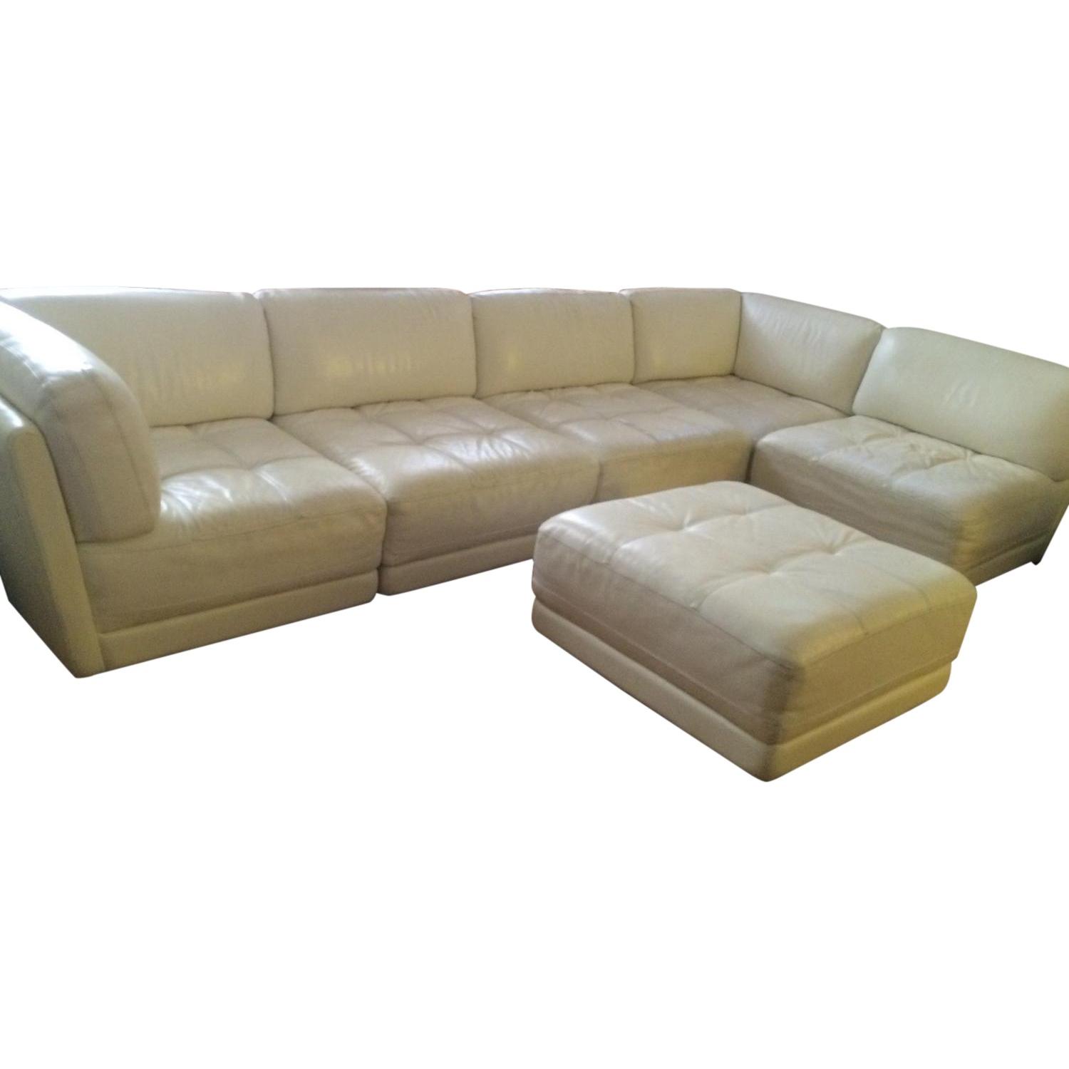 Seller's Notes:We are very sadly selling our beautiful white leather sectional because we are moving cross country. We splurged on this couch shortly after getting married and it has served us well. It remains in great shape and is very durable, comfortable, easy to clean, and an eye-catching piece. There is some normal wear and creasing (see photos), but nothing that takes away from the quality of the sofa or its overall look. The center of the ottoman has a faint brownish hint due to a decorative item that was placed on top and left behind some color; could probably be easily taken care of with a DIY cleaning/restoration kit. The best part is that it is composed of 6 pieces that can be configured in numerous ways and however you find fit with your space. It can even be used as a sleeper and comfortably accommodate two overnight guests, as depicted in the photos. **Please note that the dimensions provided are based on the configuration in the first/main photo. The pieces can be moved around according to your space.** Retails at $3,999 for all 6 pieces. We originally purchased it at the Macy's Furniture Store. See link for more information and reviews.