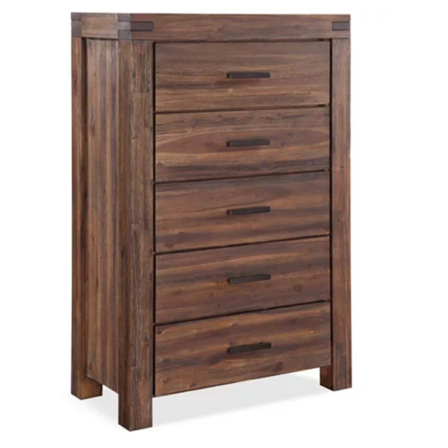 Seller's Notes:Moving sale! This is a five-drawer tall dresser (AKA chest) from Macy's. All-wood, traditional design with industrial finishes. Fit great with our industrial themed apartment that needed some wood to warm it up. Selling it to move at less than half the price. No pets/smoking environment.