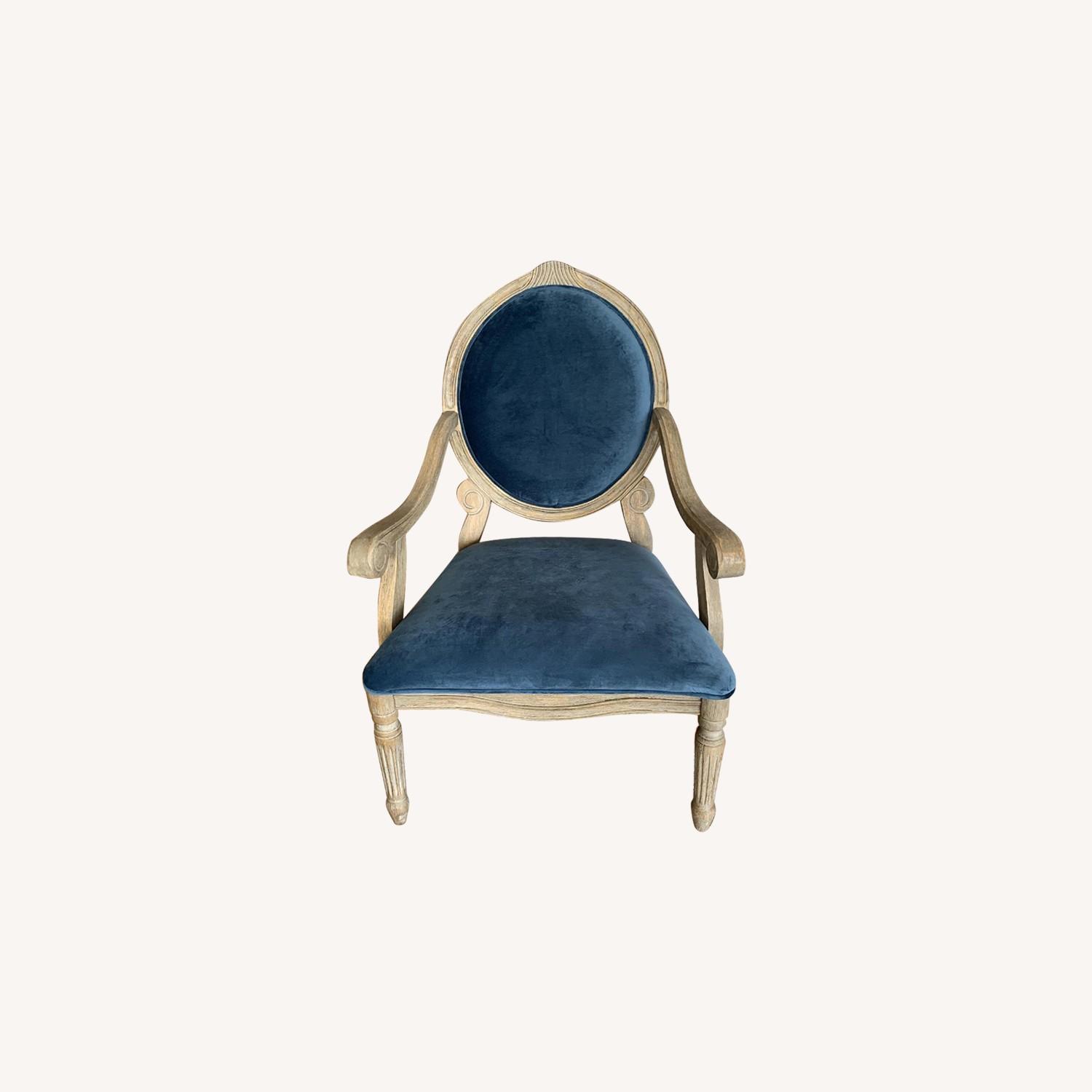 Seller's Notes:Madison Park Wood and blue velvet Brand new from Macy's Selling due to redecorating (style doesn't fit our décor)