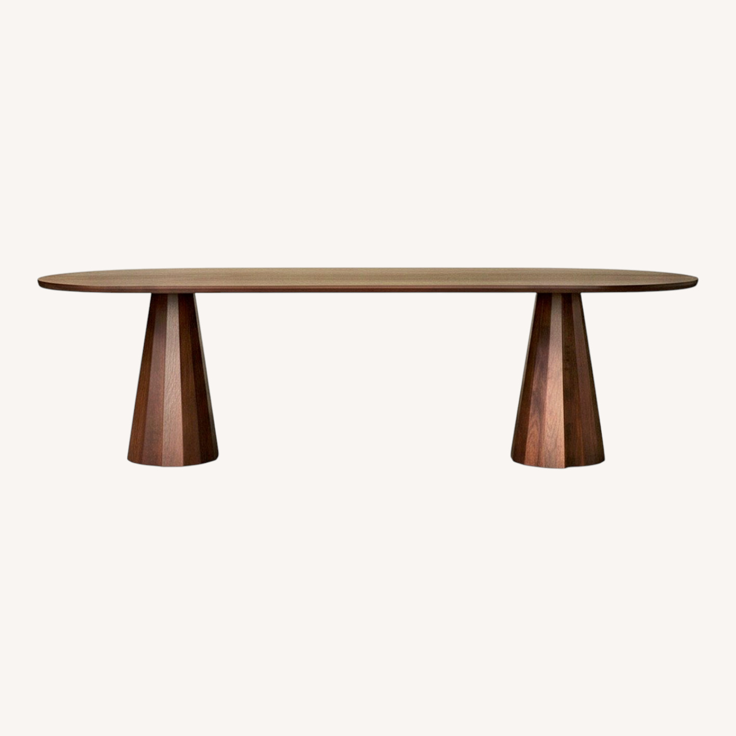 Seller's Notes:The Bank Table has a beveled-edge tabletop and conical base encircled by facets and a distinctive overlap. It is handcrafted at a family-owned workroom in upstate New York.