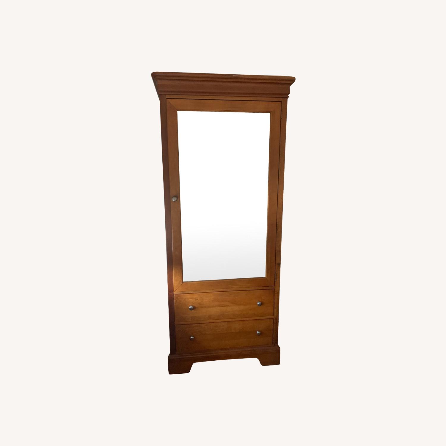 Seller's Notes:A beautifully designed, minimally used, multi-functional piece. This "armoire" can be used for storage or entertainment or both! Features 2 large bottom drawers, 3 internal/removable shelves, a removable hanging rod, an exterior mirror door and a cable entrance route/internal outlet for a TV or any electronics. A couple marks, but a true piece of craftsmanship in very good condition. Sad to be parting with it!