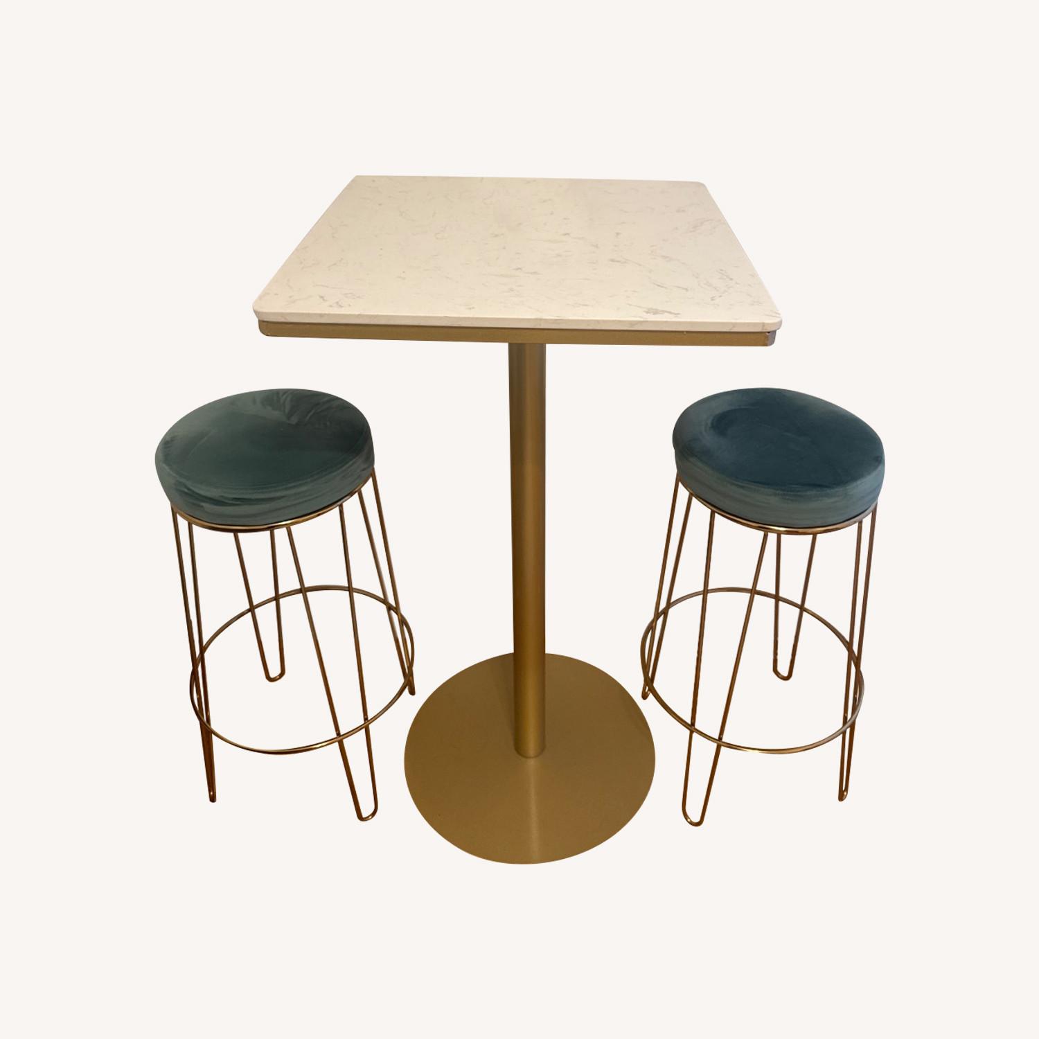 Marble / Gold Bar-Top Table + Bar Stools