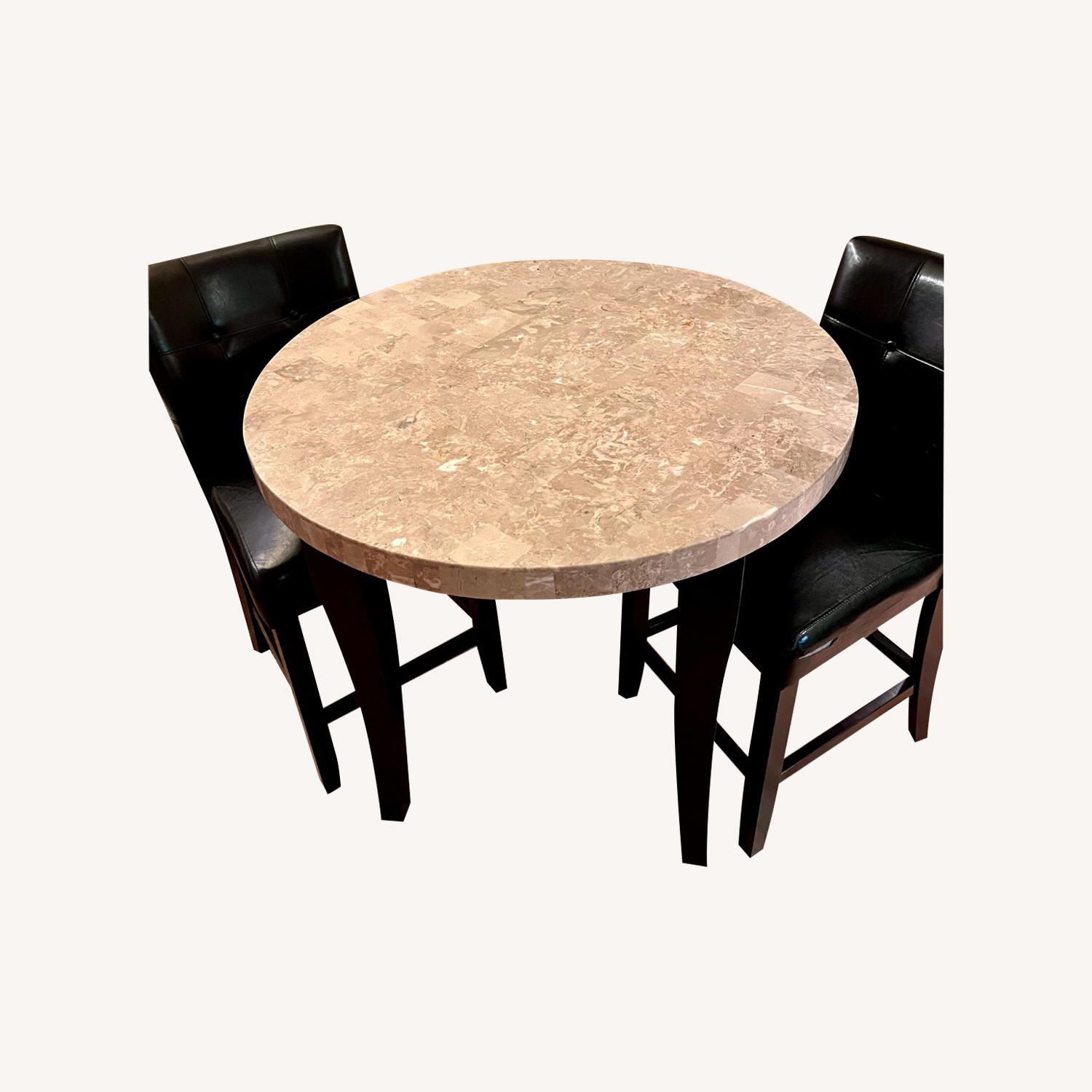Marble High-top Table W 2 Leather Chairs