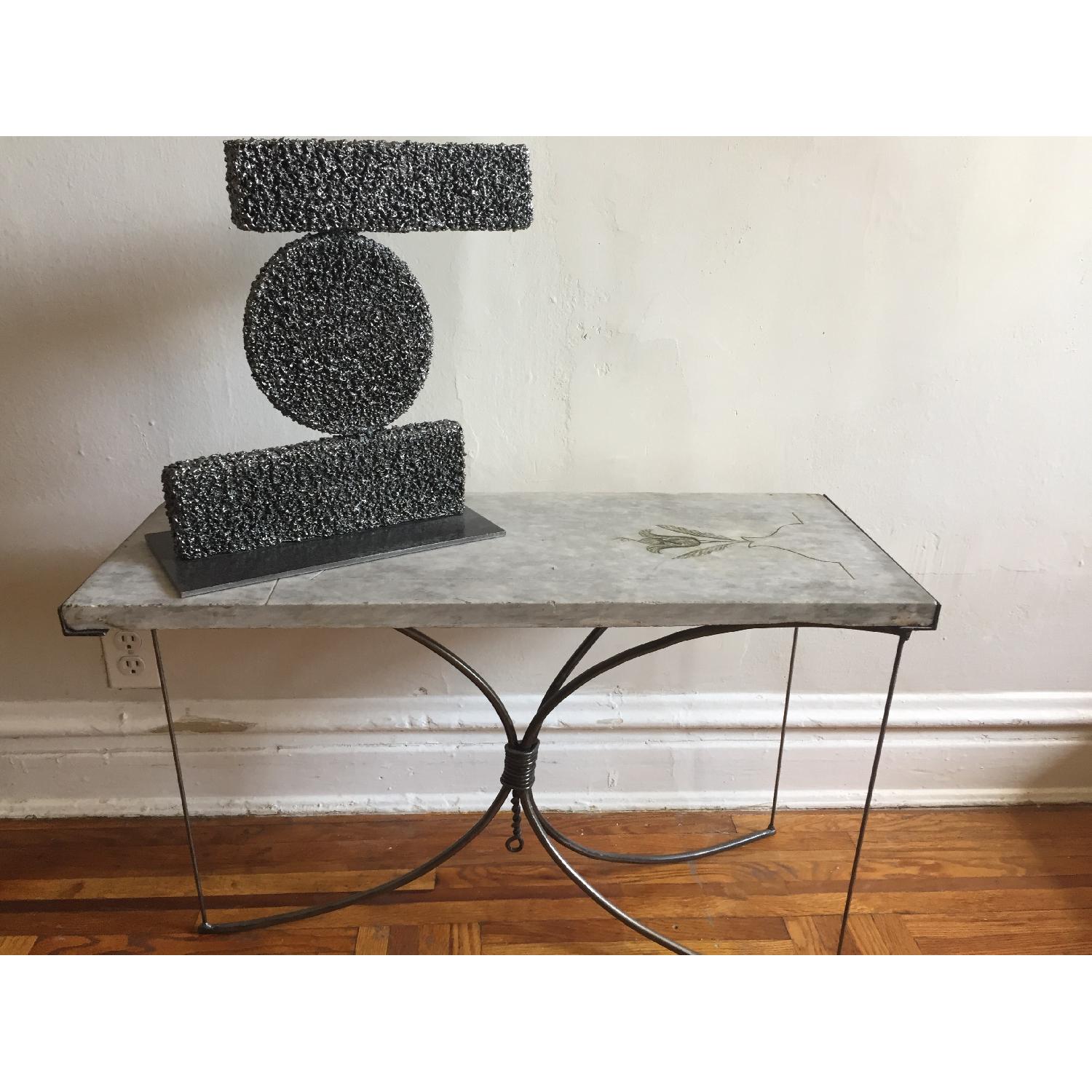 Seller's Notes:Artist made this beautiful and unique table, the marble is from a building in Michigan. Carved with Rose.