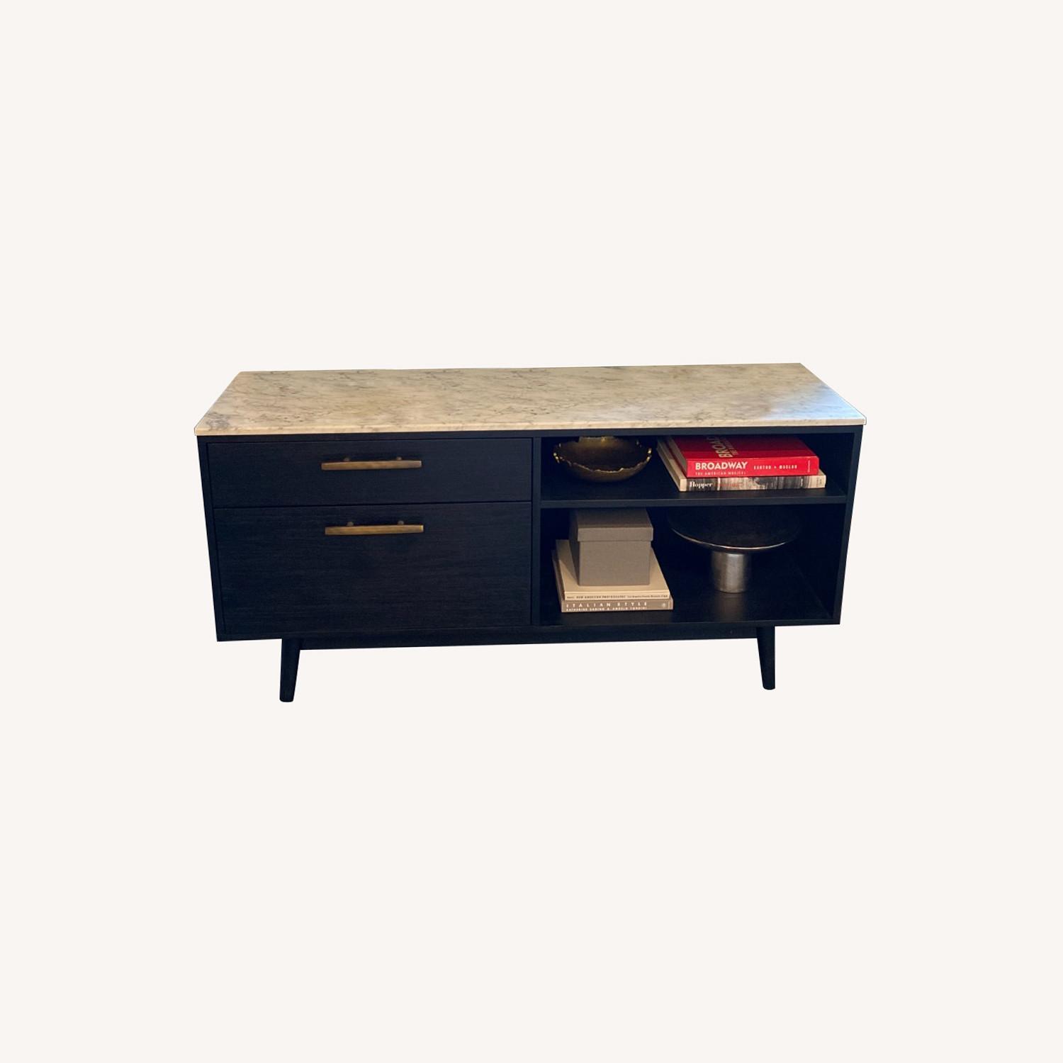 Seller's Notes:Gorgeous black wood with marble top TV / console table.