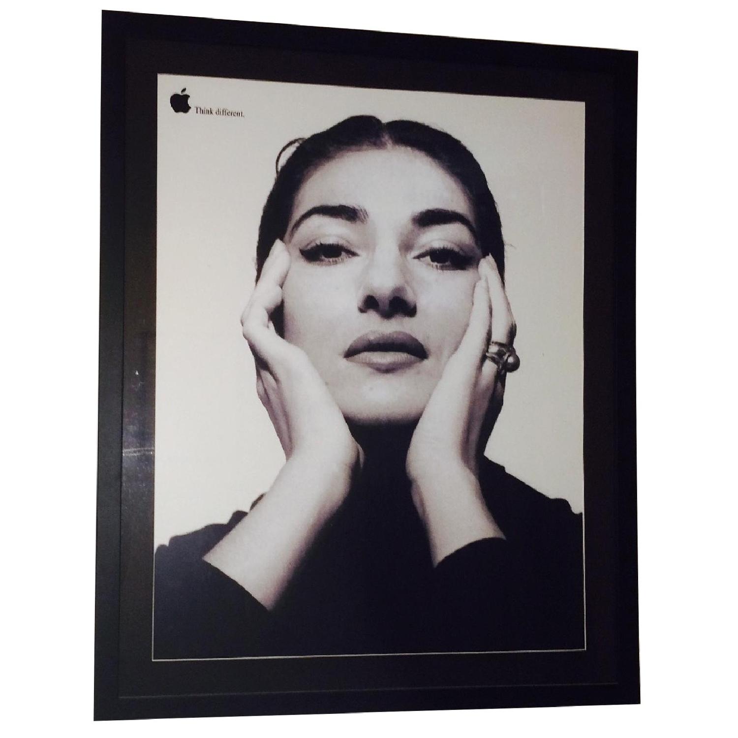 Seller's Notes:Reproduction of rare Maria Callas poster from 1990s era Apple "Think Different" campaign. Beautifully framed in matte black frame with white mounting behind glass.