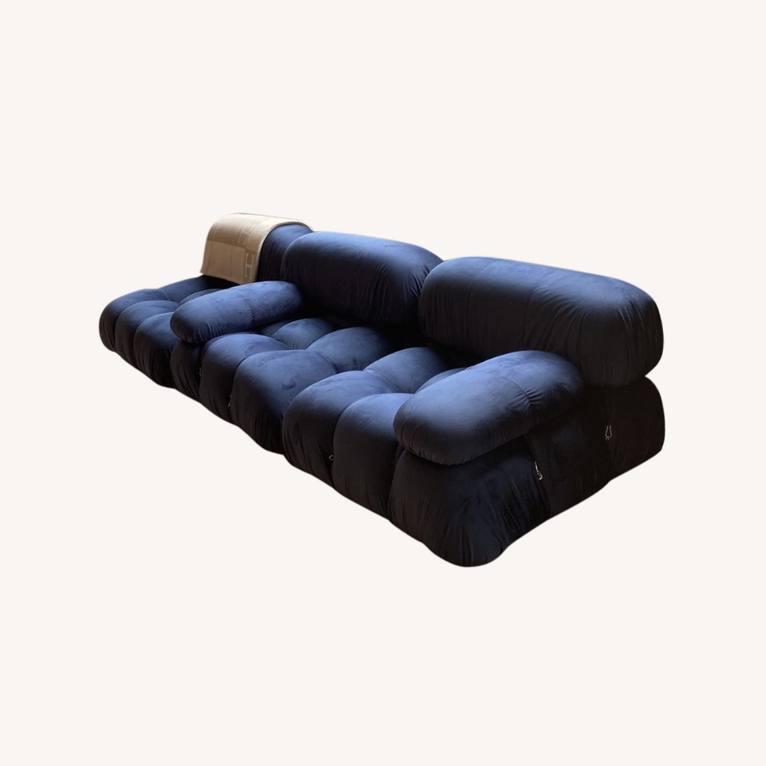 Seller's Notes:From Eternity Mordern Mario Bellini Sofa / Combination 006 Retails for $6,799 The sectional elements of Bellini sofa can be used freely and apart from one another. Material: velvet Color: midnight blue